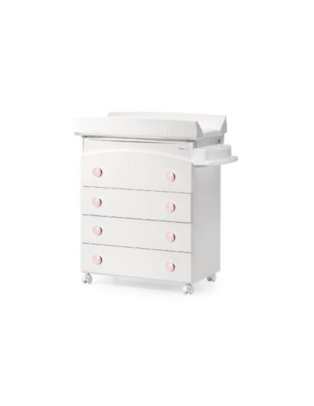 Incluye cubeta, jabonera, vestidor de PVC y juego de ruedas