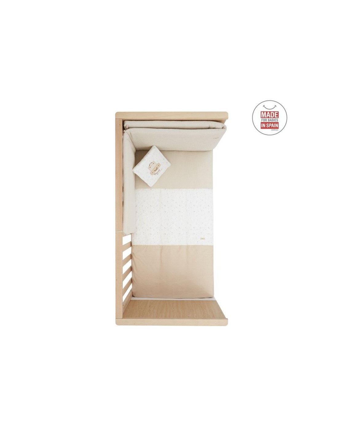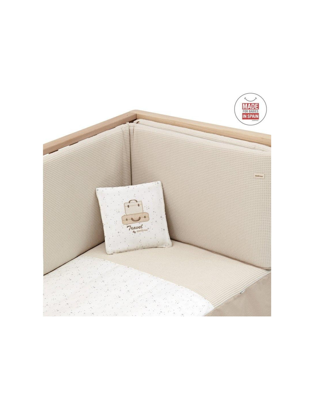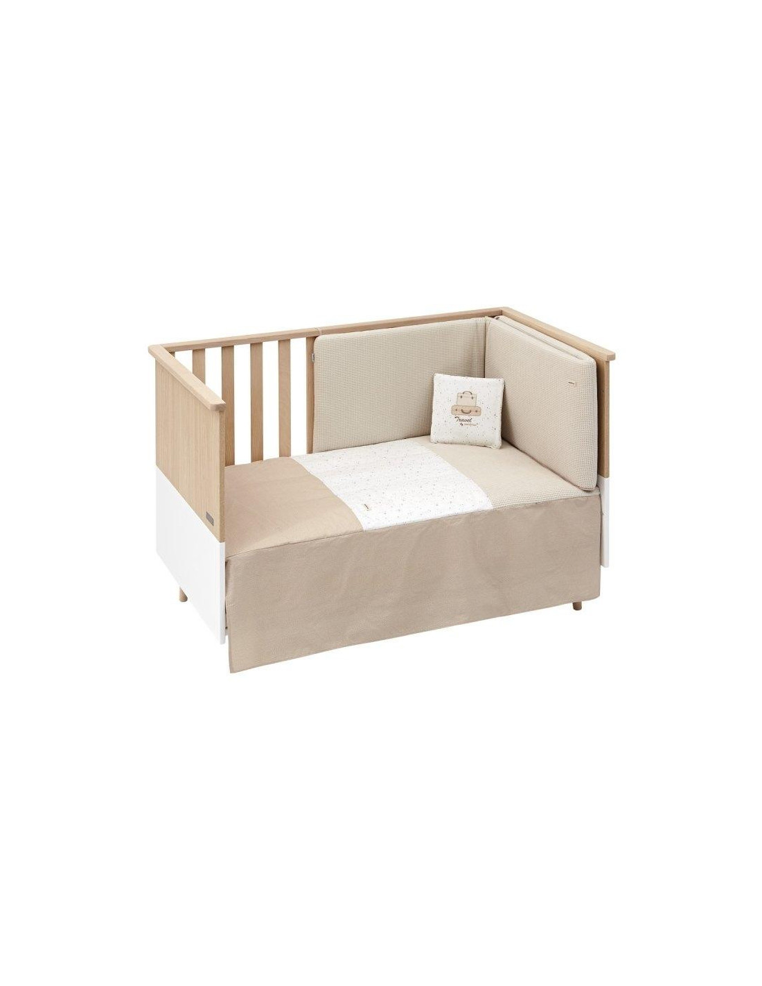 EDREDON CUNA DESENFUNDABLE + PROTECTOR CUNA + COJIN DECORATIVO SKY CAMEL.