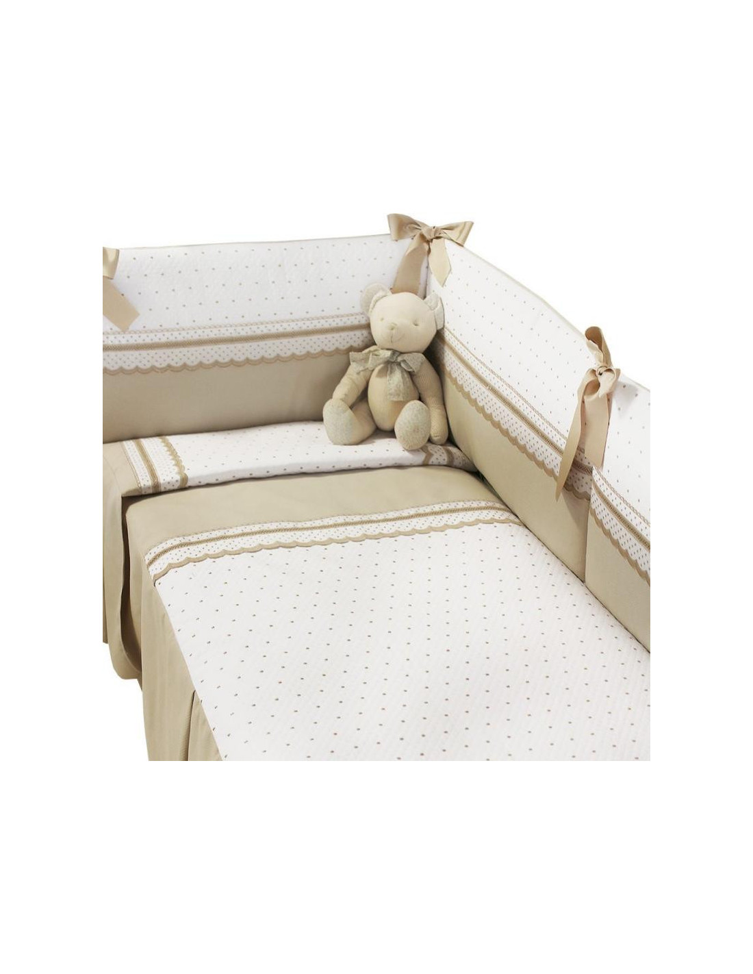 Pack de colcha y protector desenfundable con tejido lavable y relleno incluido. Con el protector evitaslas corrientes de aire a tu bebe y a su vez lo proteges de posibles golpes con los laterales de la cuna evitando que sus brazos y sus pies puedan atraparse en la cuna. Esta pieza se ajusta de forma segura y fácil a la estructura de la cuna. La colcha tiene un diseño coordinado con el protector. En invierno el relleno mantiene cálido a tu bebé de manera constante. En verano al extraer el relleno la funda te sirve como colcha liviana. Oeko-Tex Standard 100 certificada, lo que significa que todos los materiales son probados y libres de sustancias nocivas Si te gusta puedes encontrar otros interesantes artículos de la colección, en esta misma línea con las mismas altas calidades. Todo realizado y diseñado en España con los mejores materiales y los tejidos de la más alta calidad.