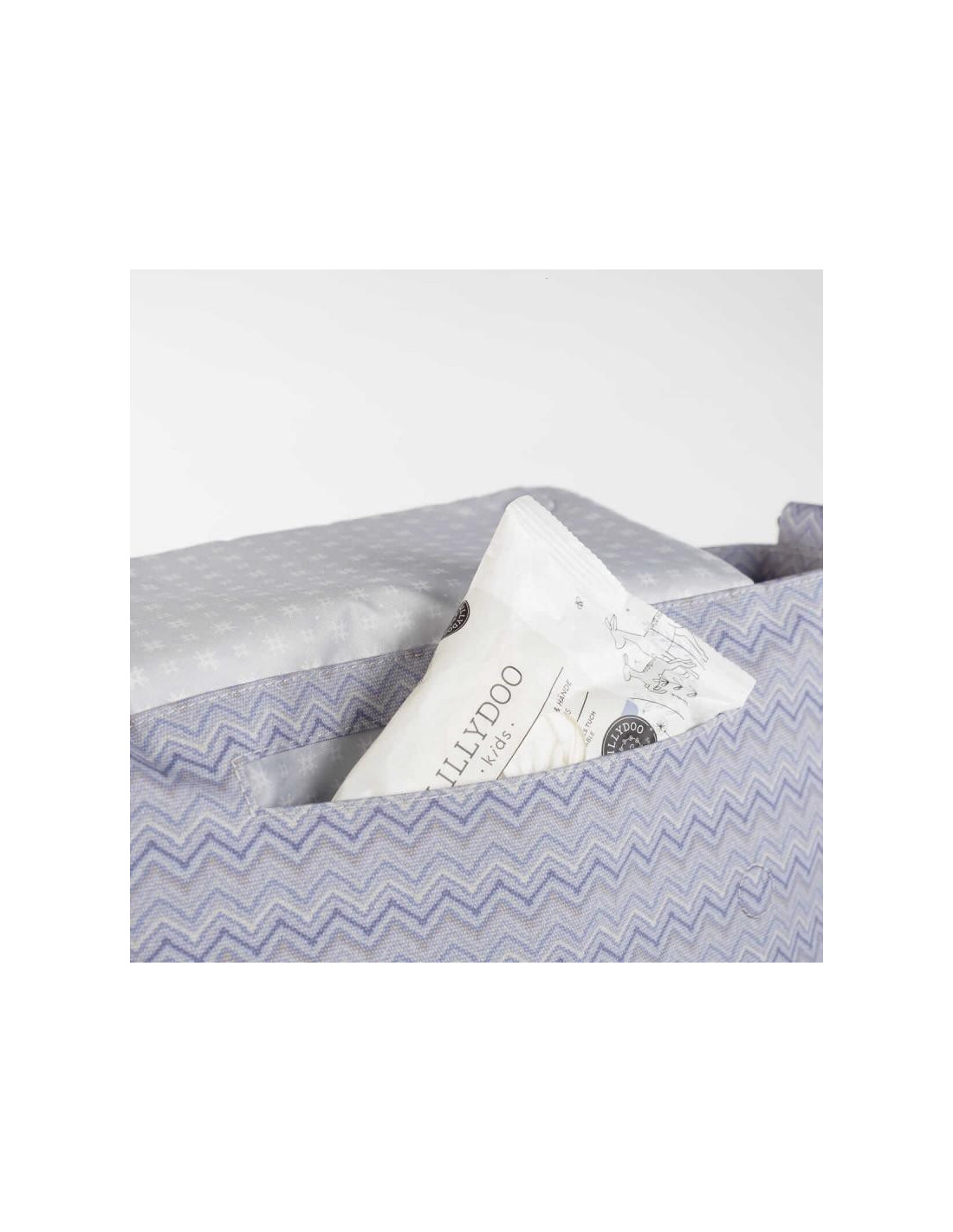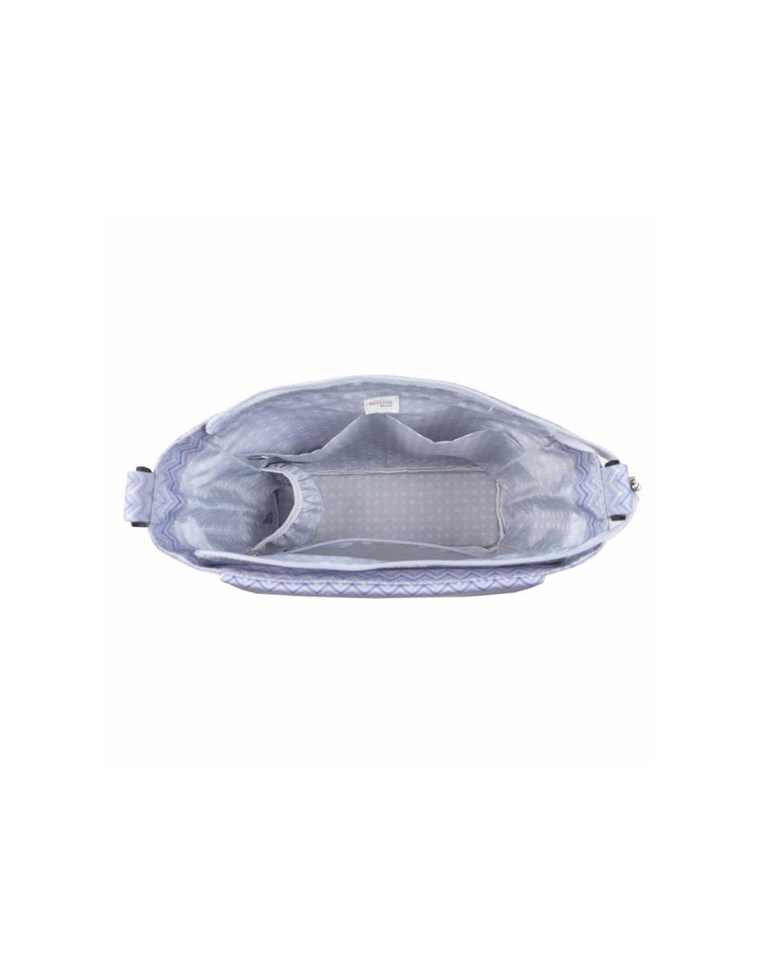 Bolso cambiador Zigzag con estampado geométrico en tonos azules para silla de paseo que incluye cambiador para bebe. Bolsa canastilla muy ligera, resistente y de gran capacidad para llevar todo lo necesario para el paseo del bebe. Tiene multiples bolsillos para poder tener todo ordenado y a mano. La bolsa tiene un sistema universal de fijación, con 2 asas cortas ajustables que facilita la colocación en cualquier modelo de silla de paseo. También incorpora una asa larga para poder colgarla en el hombro. Gran calidad y mucho estilo. Fabricada en un material resistente y de fácil limpieza. Walking Mum protege a tu bebé utilizando los mejores tejidos, libres de colorantes azoicos y sustancias nocivas para la salud. Nuestra colección Walking Mum guarda toda la calidad de la marca Pasito a Pasito pero con un particular sello de estilo urbano y moderno que no pasa desapercibido, para vestir diferente los paseos con tu bebé. Las bolsas de maternidad de esta línea son más sport y prácticas, especialmente pensadas en mamás y papás modernos que aprecian los diseños más actuales y en tendencia sin dejar de lado la calidad y la funcionalidad de los accesorios que complementan y hacen más cómodos todos los paseos con sus bebés. Especificaciones: Materiales: 100% algodón plastificado. Medidas: 41X34X12 cm.