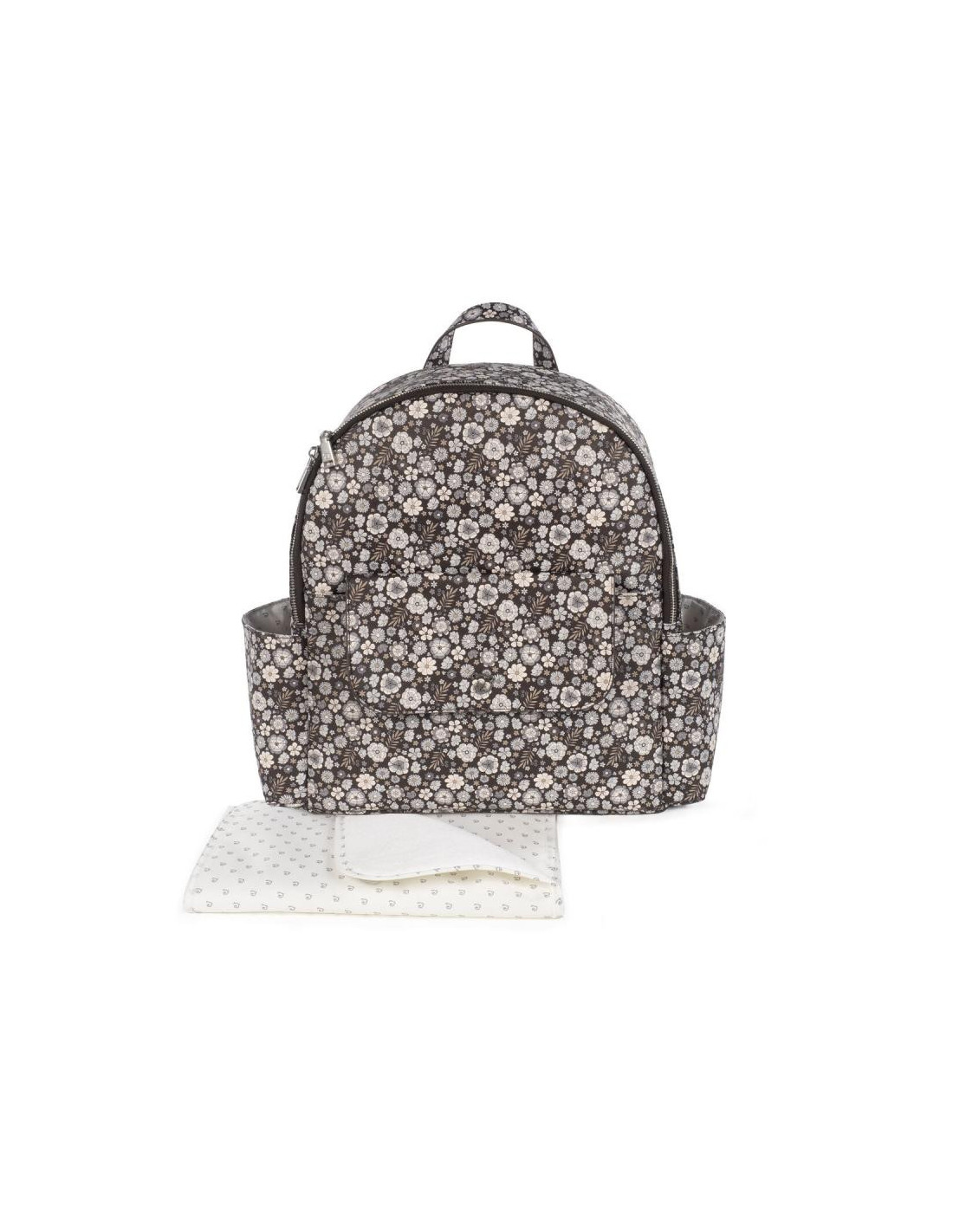 Mochila en polipiel impresa con flores Blossom Cloud. De gran capacidad para llevar todo lo que necesitas tu y tu bebé. Bolsillos interiores y exteriores para tenerlo todo a mano y en orden. Tiene un bolsillo interior térmico para biberones y un bolsillo plastificado para la ropa mojada. Compartimento para portátil o tablet. Tiene 2 asas grandes ajustables para que puedas usarla colgada a la espalda y otras dos asas pequeñas para que puedas usarla colgada del carrito del bebé. Incorpora una cinta trasera para sujetarla a la maleta trolley. Está fabricado con materiales de gran calidad, libres de colorantes azoicos, ftalatos y sustancias nocivas para la salud. Además se puede lavar a mano o a máquina a temperaturas de hasta 30º. Los productos para bebé de Pasito a Pasito cuentan con un diseño muy diferente a todas las demás. Sus colecciones se caracterizan por el trabajo al detallada, pensadas siempre desde un punto de vista práctico. Utilizan materiales de primera calidad para remarcar la elegancia y la armonía en cada una de sus piezas. Nuestros modelos son exclusivos y de estilo inconfundible, pensados para madres actuales que gozan de buen gusto y que aprecian los detalles tanto como nosotros. Especificaciones: Materiales: Eco-leather. Color: Marrón / Gris. Medidas: 40X14X40 cm.