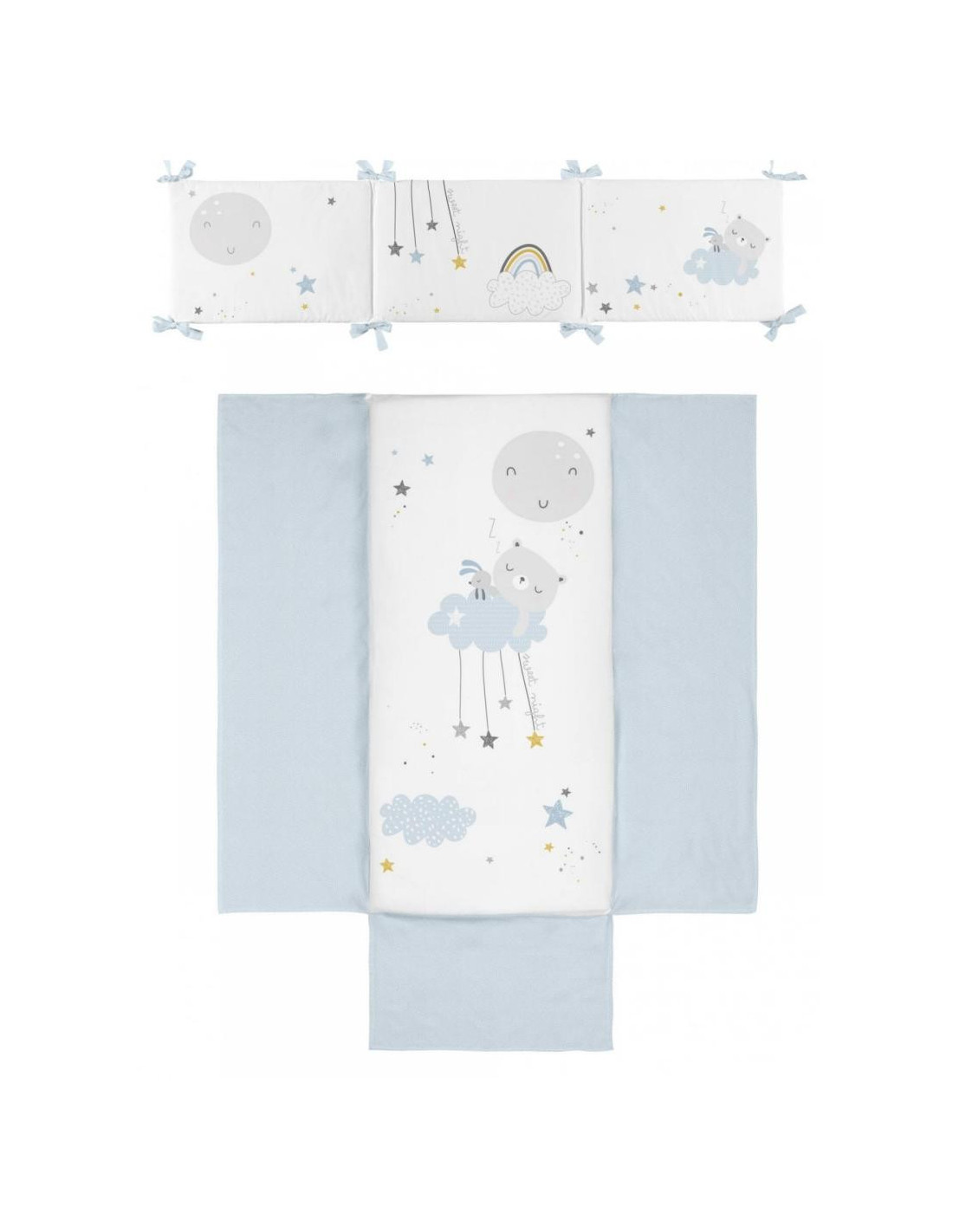 El pack perfecto para la cuna de tu pequeño que incluye una fantástica chichonera para evitar posibles golpes durante su descanso. Realizado en algodón muy agradable al tacto. Incluye relleno.