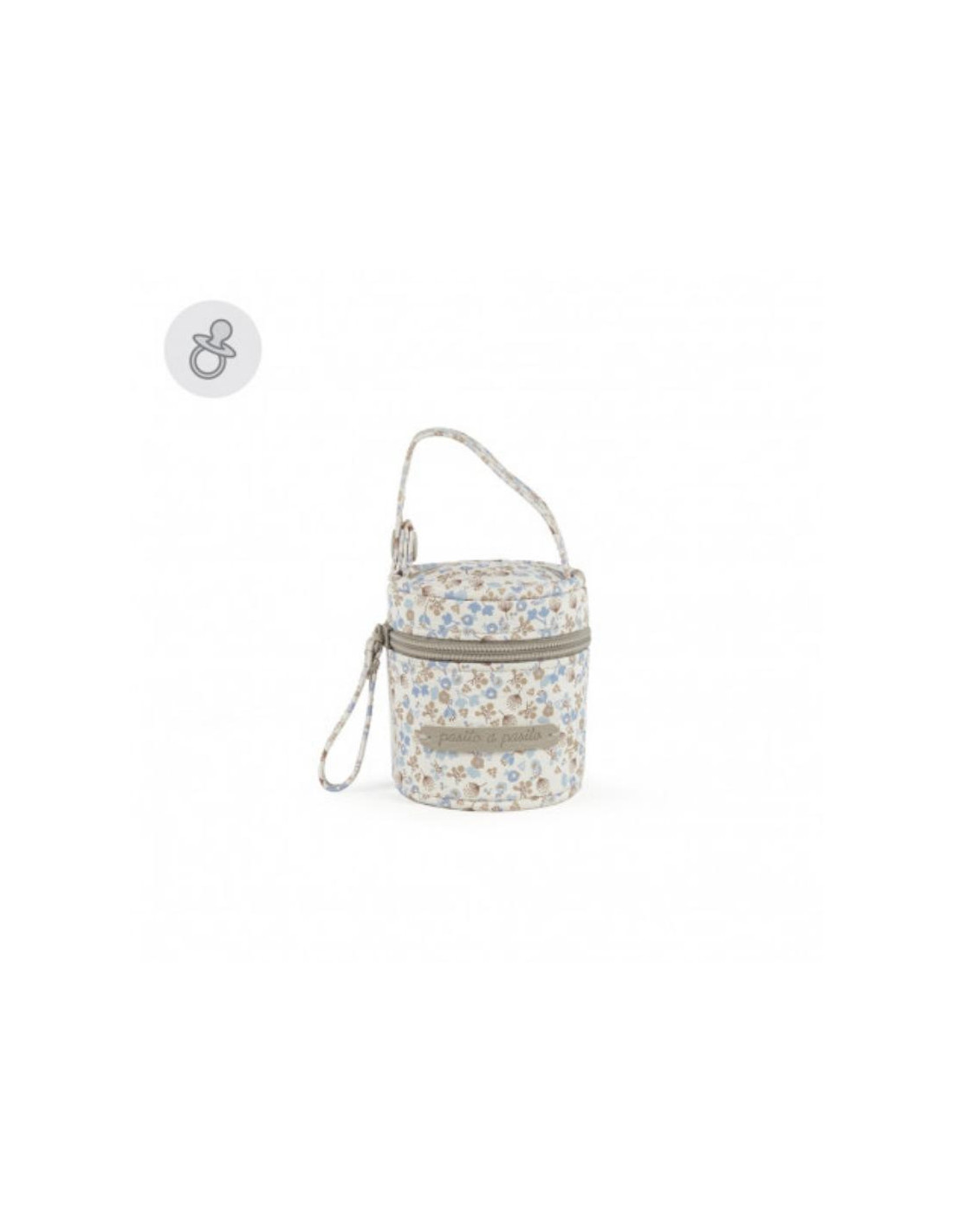 La funda es ideal para guardar los chupetes y gracias a su asa con broche podrás llevarla colgada de la bolsa de maternidad, del cochecito o la sillita. Su cierre es mendiante cremallera.