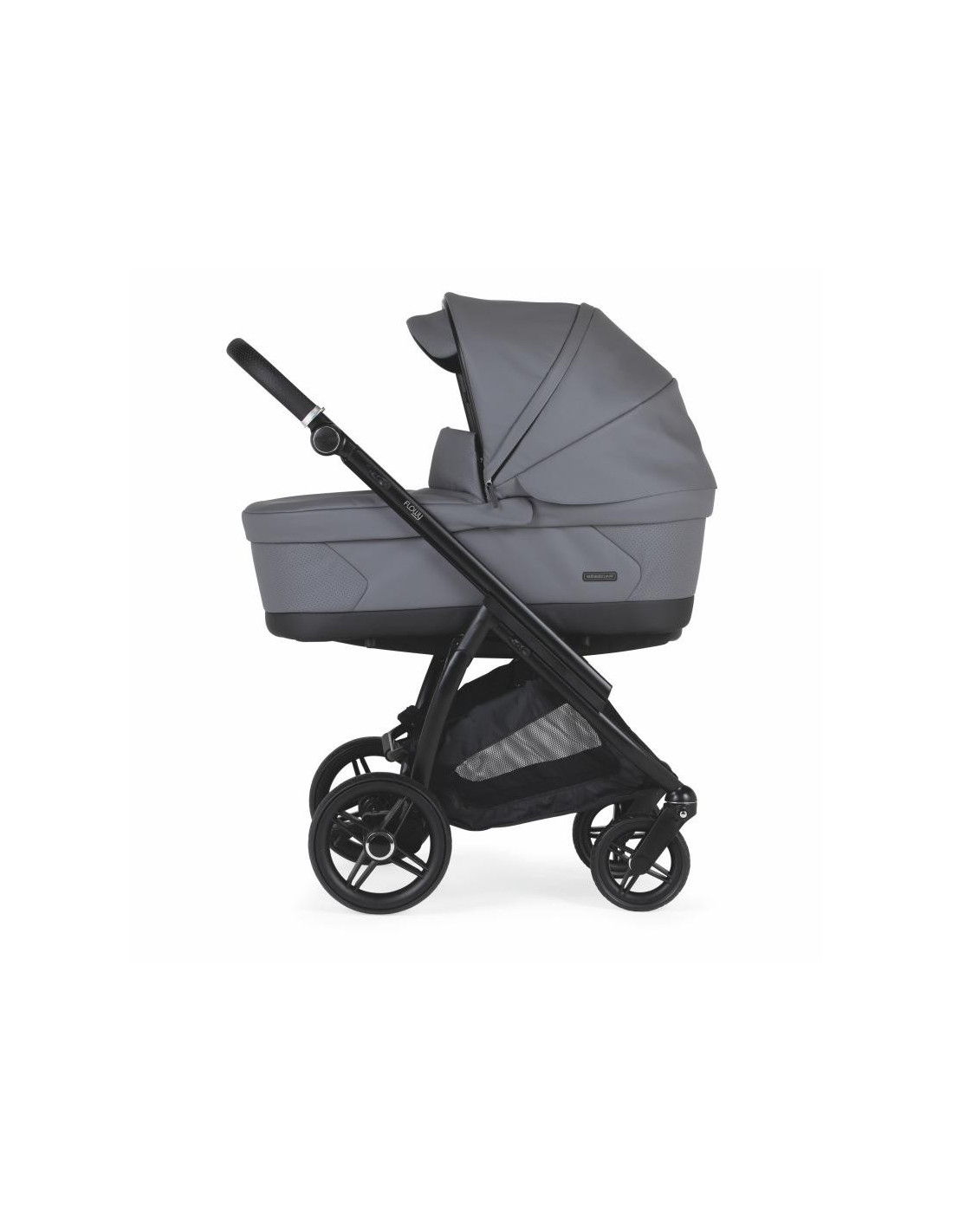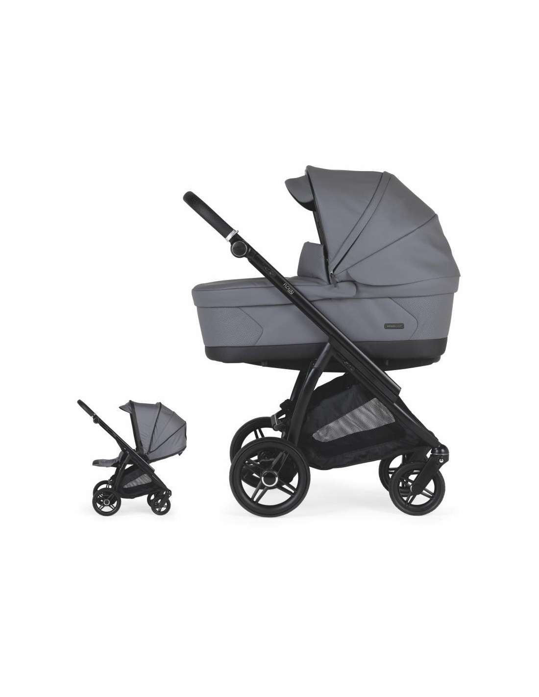 COCHE FLOWY DUO KP425 PIEL GRIS OSCURO CHASIS NEGRO BEBECAR