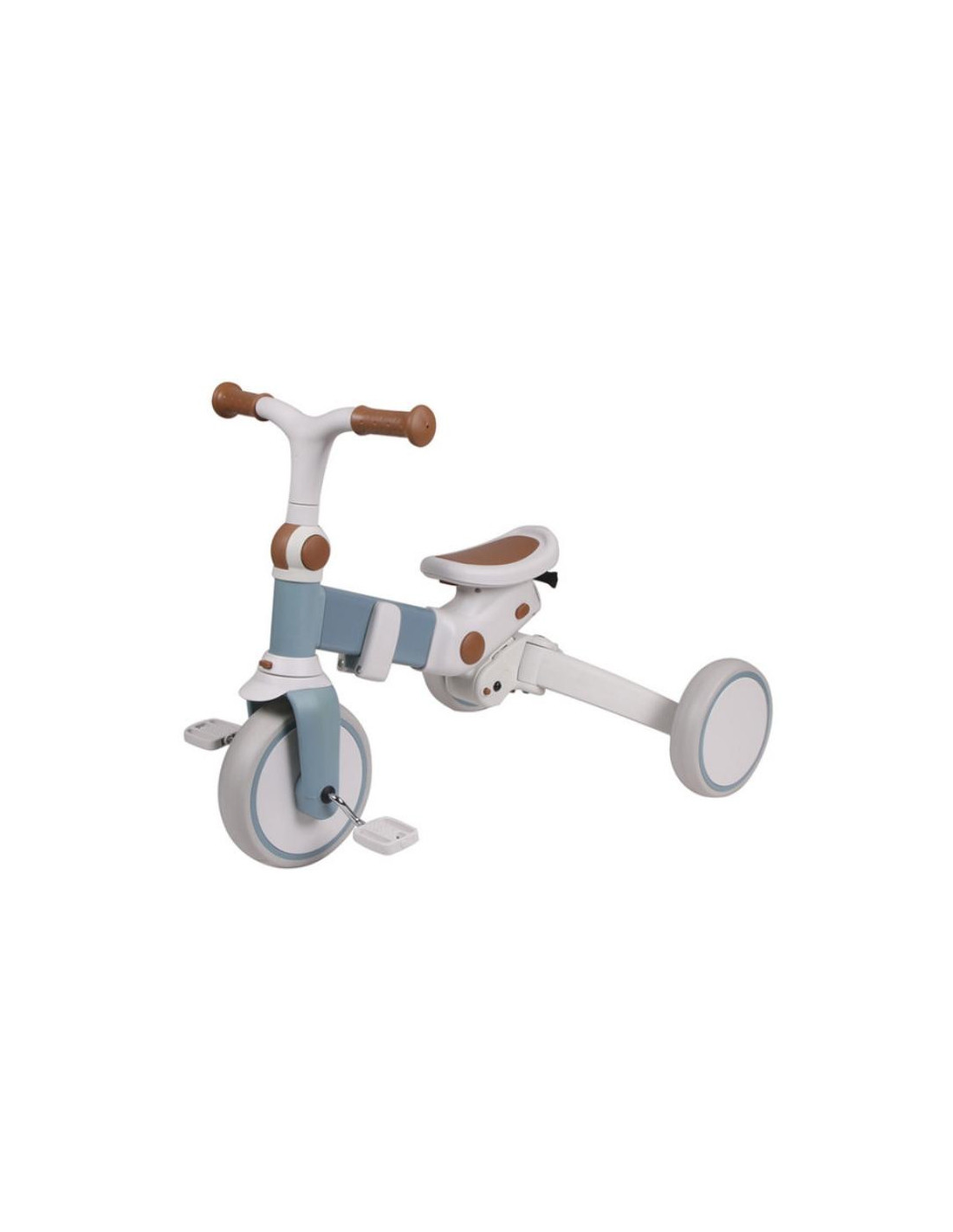 - Provisto de un sencillo sistema que permite transformar la bicicleta sin herramientas y ajustarla a la edad del niño.
