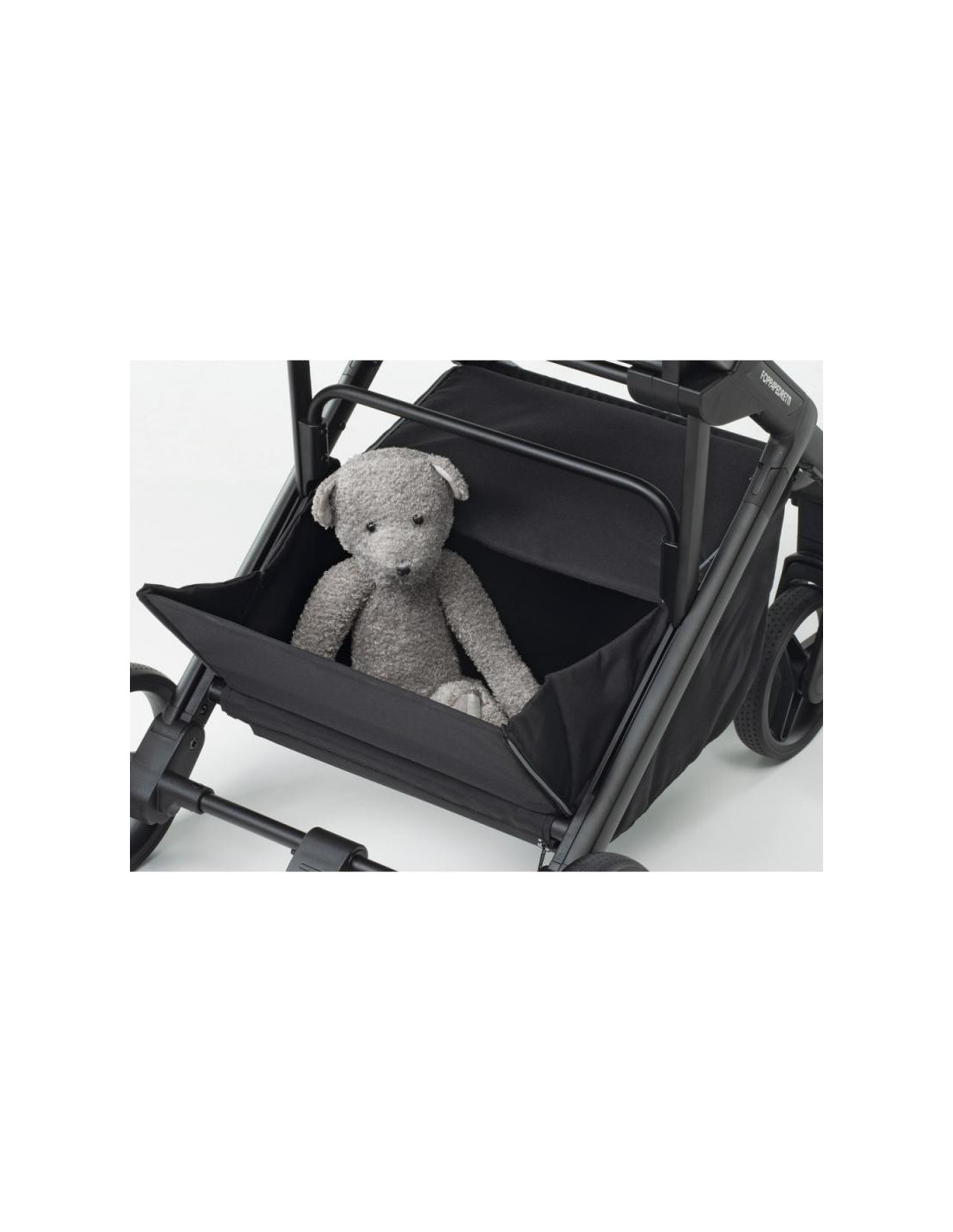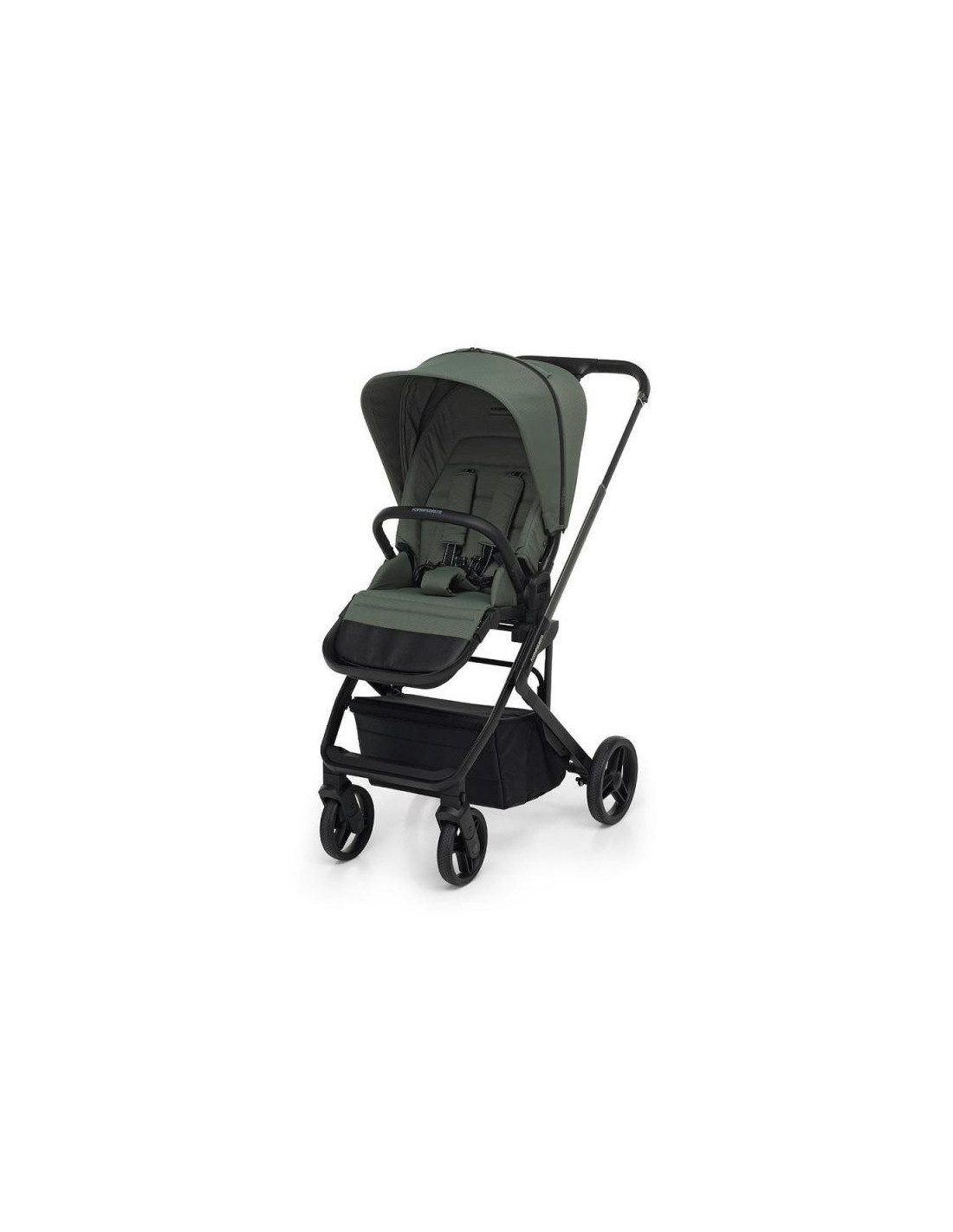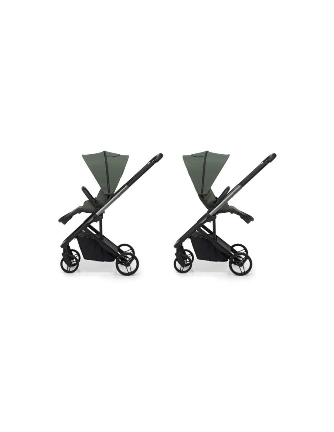 Sobre la ligera estructura Self Standing de aluminio con detalles cromados se puede montar el espacioso capazo, con interior desmontable y plegable para un cierre compacto, luego la silla de paseo reversible y plegable orientada a la calle y orientada a la madre con respaldo ventilado, utilizable desde el nacimiento.