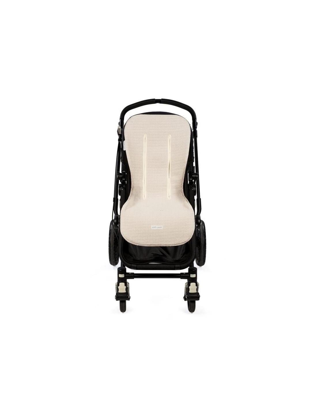 La colchoneta Icon Cream de Pasito a pasito en tejido leno 100% algodón es la cobertura ideal que se adapta a la mayoría de las sillas de paseo y darle mayor comodidad a tu hijo durante sus paseos en días calurosos. Está diseñada en el respaldar con una capa de tejido en material transpirable que aísla la humedad y evita la sudoración excesiva del bebe, protegiendo la silla para hacer el paseo más confortable. Este modelo está pensada para adaptarla a la mayoría de las sillitas de paseo ya que dispone de varias aperturas (ojales) y ajustes para cubrir la superficie donde se recuesta el bebé. Acabados de calidad. Todas nuestras fundas están fabricadas conforme a las más exigentes normativas europeas, con materiales de gran calidad, libres de colorantes azoicos, ftalatos y sustancias nocivas para la salud. Tela de fácil limpieza, se recomienda lavar a máquina a 30º. Los productos para bebé de Pasito a Pasito cuentan con un diseño muy diferente a todas las demás. Sus colecciones se caracterizan por el trabajo al detallada, pensadas siempre desde un punto de vista práctico. Utilizan materiales de primera calidad para remarcar la elegancia y la armonía en cada una de sus piezas. Nuestros modelos son exclusivos y de estilo inconfundible, pensados en las madres actuales que gozan de buen gusto y que aprecian los detalles tanto como nosotros. Especificaciones: Materiales: 100% algodón. Color: Beige. Tamaño universal.