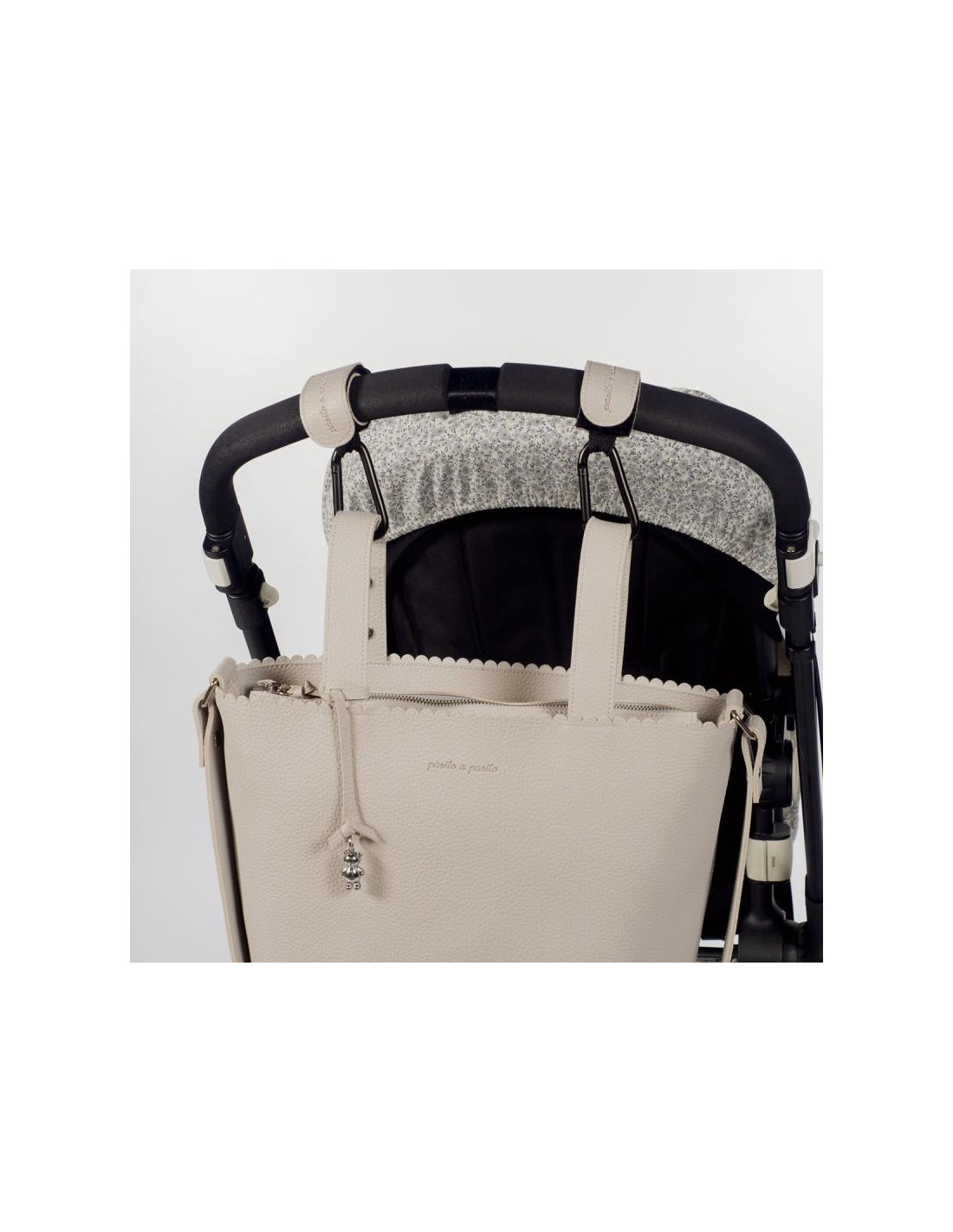 Set de 2 ganchos para cochecito Icon en polipiel. Gancho de metal. Muy facil de colocar gracias a sus tiras con velcro. Perfecto para colgar la bolsa de canastilla o cualquier bolsa que necesites llevar en el cochecito. Soporta hasta 5 kgs de peso. Universal.