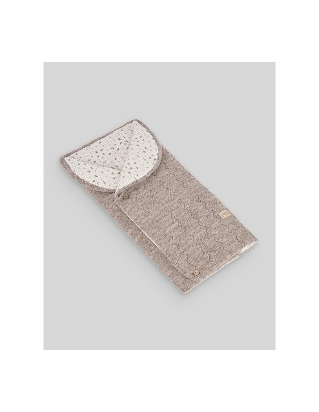 Saco nana de punto combinado con estampado de vichy otoñal. Se abre totalmente para usar de cambiador. Tiene ojales traseros para porta bebé. Ideal para portar al bebé.