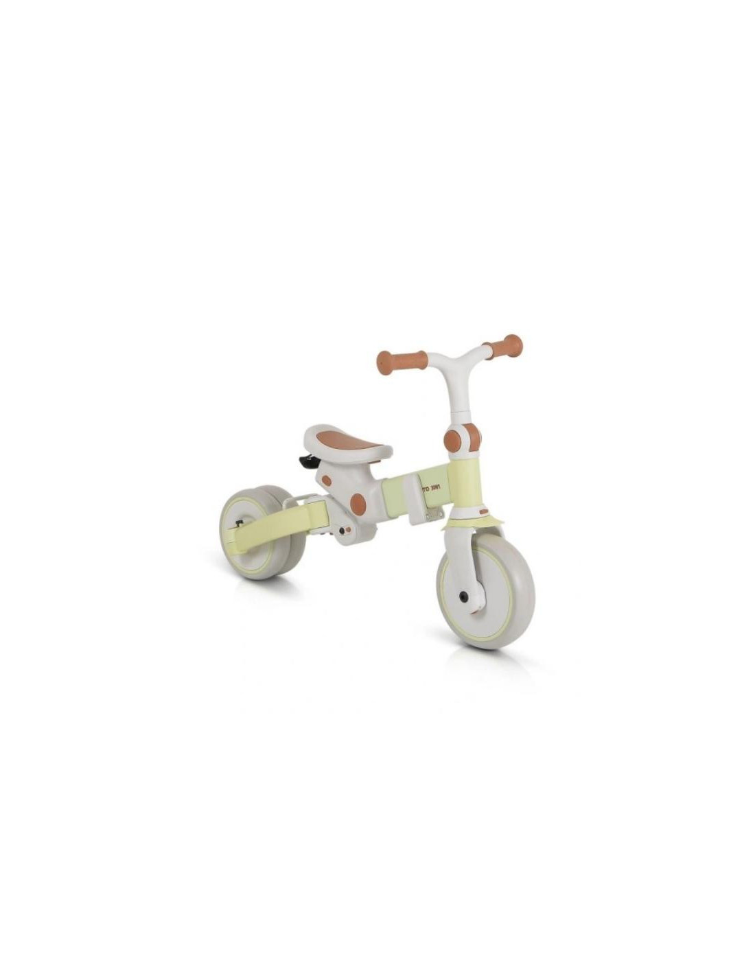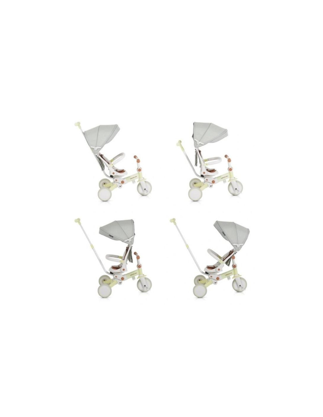 - Provisto de un sencillo sistema que permite transformar la bicicleta sin herramientas y ajustarla a la edad del niño.