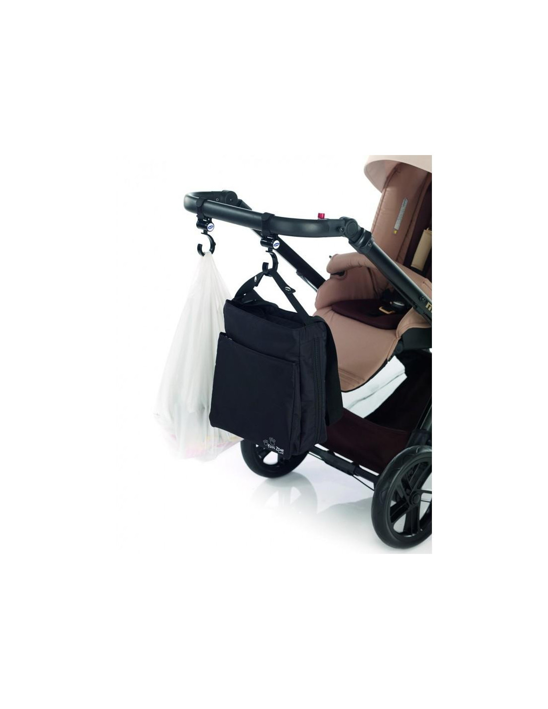 Adaptable a cochecitos, sillas de paseo, cunas,?.se puede colgar en cualquier sitio gracias a sus fuertes velcros de sujección y su gancho giratorio.