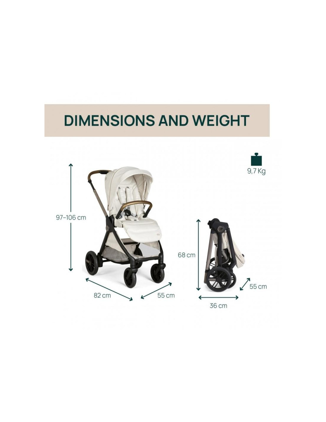 Con plegado One Touch de un solo clic, respaldo reclinable en 4 posiciones, y una capota XL con protección UV50+.
