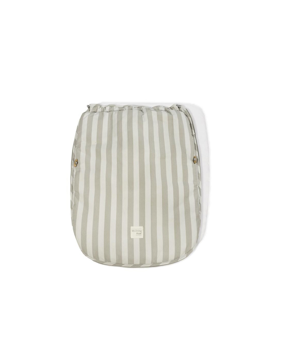La funda de silla para bebé Sintra con estampado de rayas está fabricado con un tejido de 100% algodón. Es la funda ideal para cubrir la base de la silla de paseo y viene provista de saco para arropar a tu bebé. Con este saco tu bebé estará cómodo durante los meses de primavera y de otoño. Trasera con material anti-sudoración que evita la sudoración excesiva del bebe. Relleno extraíble. Su esquema dispone de varias aperturas (ojales) y ajustes con los que se te hará más fácil adaptarla a la mayoría de los cochecitos, convirtiendo el paseo de tu bebé seguro y confortable. Está elaborado con un material resistene y cálido. Cuenta con una base de poliéster en el reposapiés que facilita la limpieza posterior a su uso. Es un diseño bonito, simple y cómodo que crea un nido para tu bebé manteniéndolo arropado y protegido. El saco se adapta sin problemas a cualquier coche y le permite disfrutar de un descanso más agradable con la forma acogedora que tiene de nido.Gran calidad y mucho estilo. Fabricado en materiales resistentes y de fácil limpieza a mano o a máquina a 30 °C. Walking Mum protege a tu bebé utilizando los mejores tejidos, libres de colorantes azoicos y sustancias nocivas para la salud. Nuestra colección Walking Mum guarda toda la calidad de la marca Pasito a Pasito pero con un particular sello de estilo urbano y moderno que no pasa desapercibido, para vestir diferente los paseos con tu bebé. Los accesorios de esta línea son más sport y prácticas, especialmente pensadas en mamás y papás modernos que aprecian los diseños más actuales y en tendencia sin dejar de lado la calidad y la funcionalidad de complemetos que hacen más cómodos todos los paseos con sus bebés. Medidas: 47 x 90 cm.