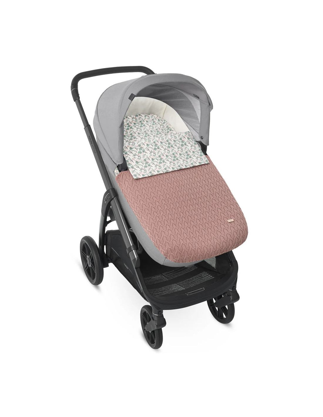 Saco con colcha para capazos de bebé confeccionada en punto combinado con estampado higuera en el embozo. Incluye almohada para la cabeza del bebé. Lleva un elástico en la parte inferior y se adapta a casi todos los capazos del mercado.