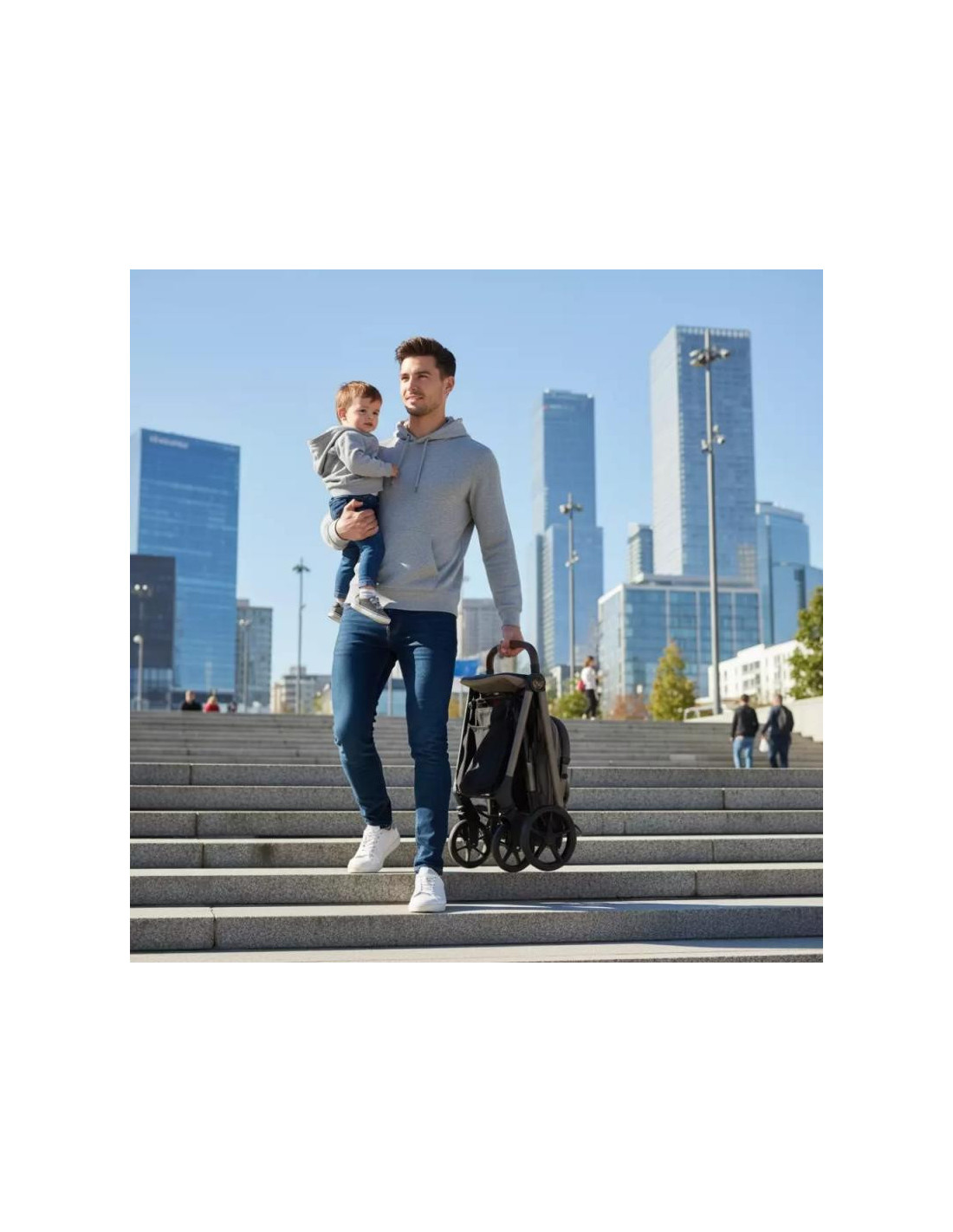 Brazo delantero extraíble para coger o sentar al bebé con facilidad.