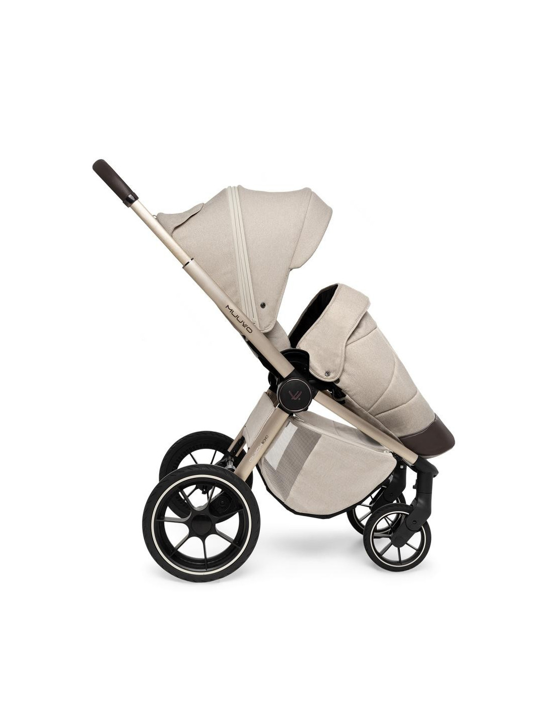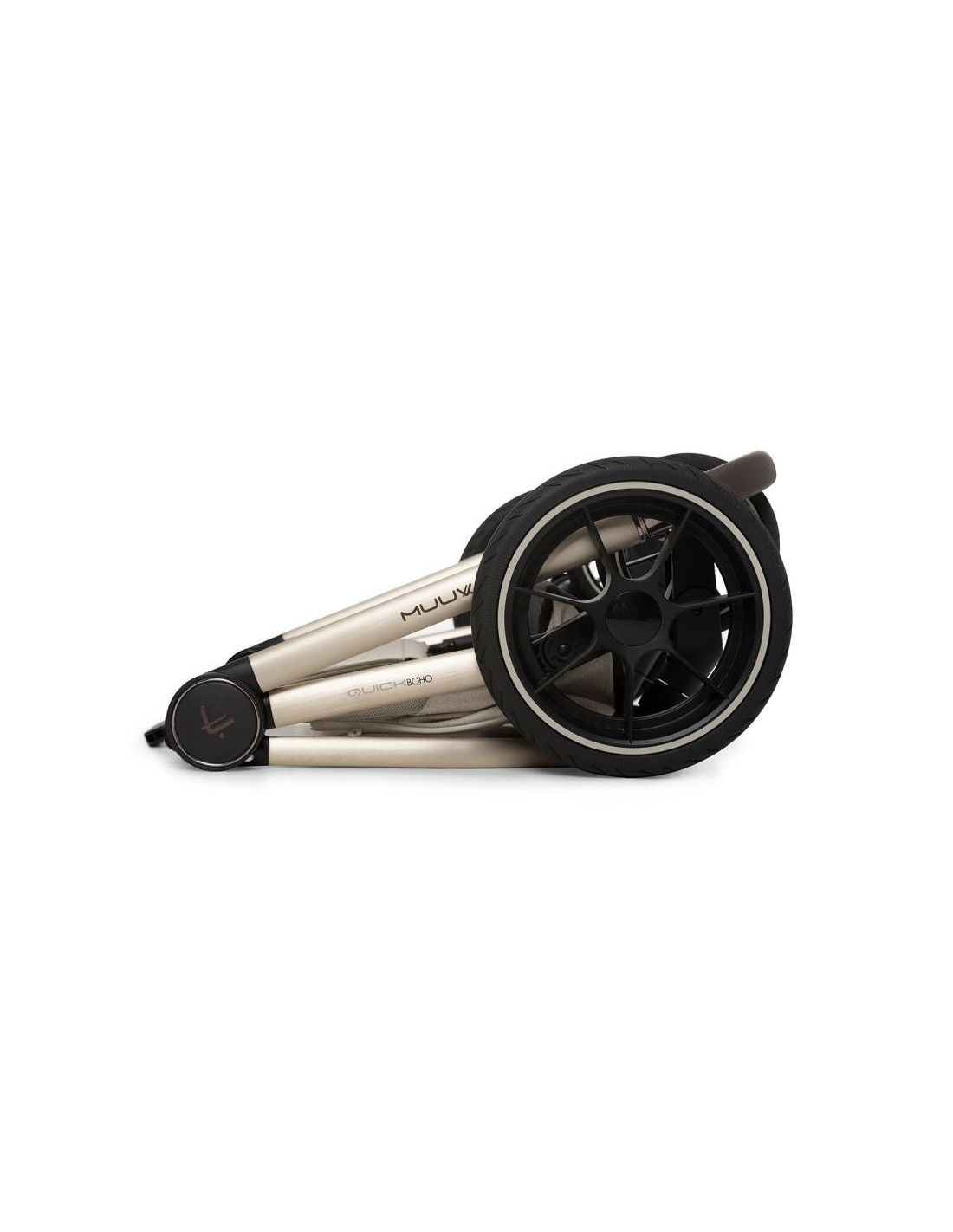 Descubre el Carro Muuvo Quick Boho Edición Limitada. Un carrito de bebé de lujo, fabricado con materiales premium, con un elegante chasis color champagne y un bolso Boho que destila clase. Su diseño compacto facilita su plegado, y sus detalles como el manillar en ecopiel perforada aportan un toque único. ¡Vive la experiencia llena de lujo que sólo Muuvo Quick Boho puede ofrecerte.