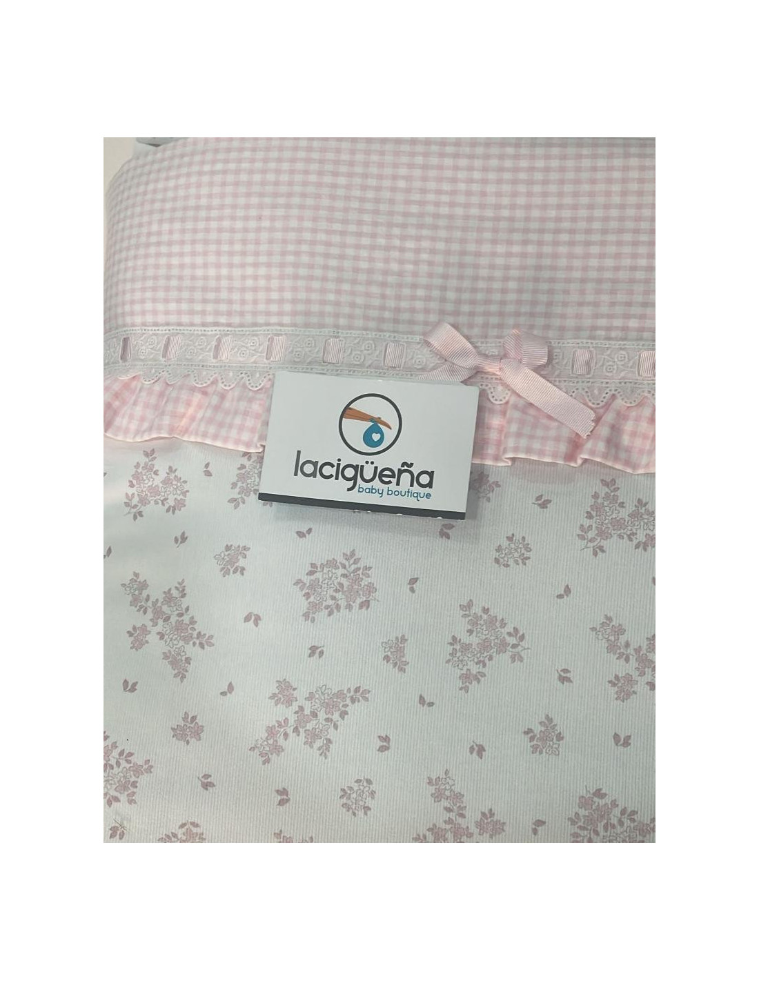 Colchoneta en pique blanco con cubrepies de flores combinado con vichi.