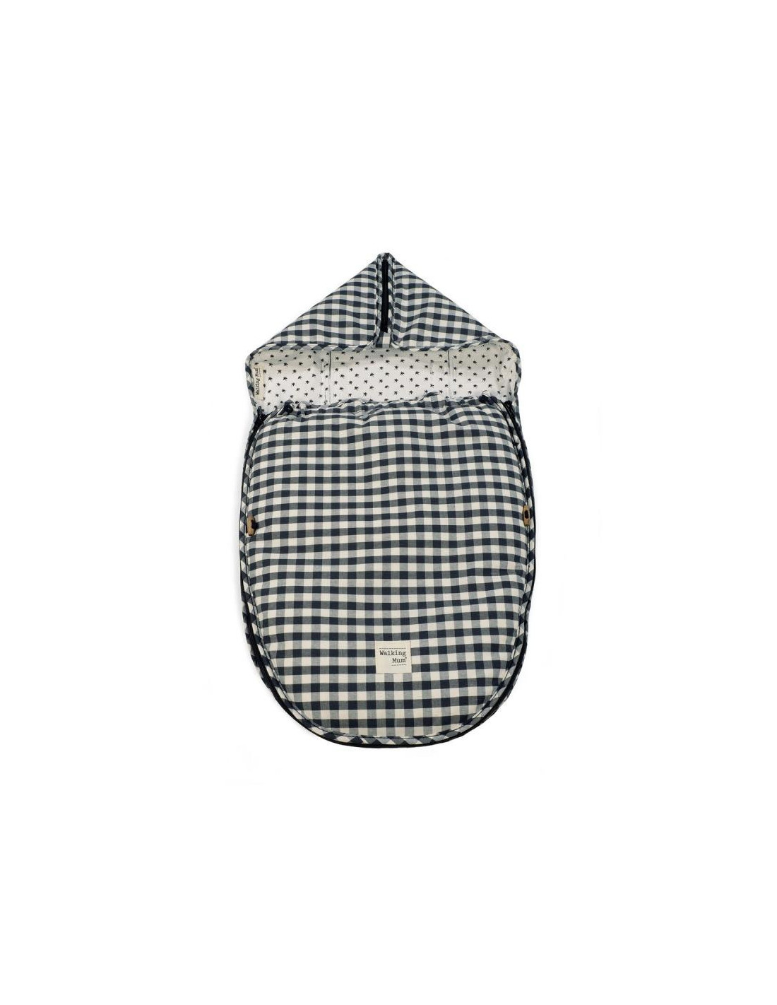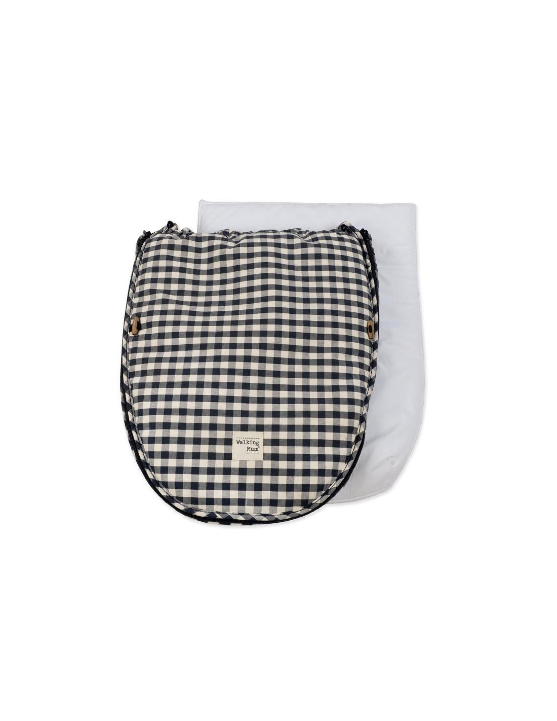 Funda con saco Remy en cuadro vichy XL negro ideal para cuco y portabebé. Con este saco tu bebé estará cómodo durante el paseo. Trasera con material anti-sudoración que evita la sudoración excesiva del bebe y protege la silla haciendo el paseo más confortable. Relleno extríble. Dispone de varias aperturas (ojales) y ajustes para adaptarla a la mayoría de los Portabebés. Puedes moverlo del carro a la cuna sin incomodarlo ni perturbar sus dulces sueños. Gran calidad y mucho estilo. Fabricado en materiales resistentes y de fácil limpieza a mano o a máquina a 30 °C. Walking Mum protege a tu bebé utilizando los mejores tejidos, libres de colorantes azoicos y sustancias nocivas para la salud. Nuestra colección Walking Mum está diseñada con un particular sello de estilo urbano y moderno que no pasa desapercibido, para vestir diferente los paseos con tu bebé. Los accesorios de esta línea son más sport y prácticos, especialmente pensados en mamás y papás modernos que aprecian los diseños más actuales y en tendencia sin dejar de lado la calidad y la funcionalidad de los complementos que hacen más cómodos todos los paseos con sus bebés. Especificaciones: Materiales: exterior 65% algodón ? 35% poliéster / interior 100% algodón. Color: negro. Medidas: Universal.