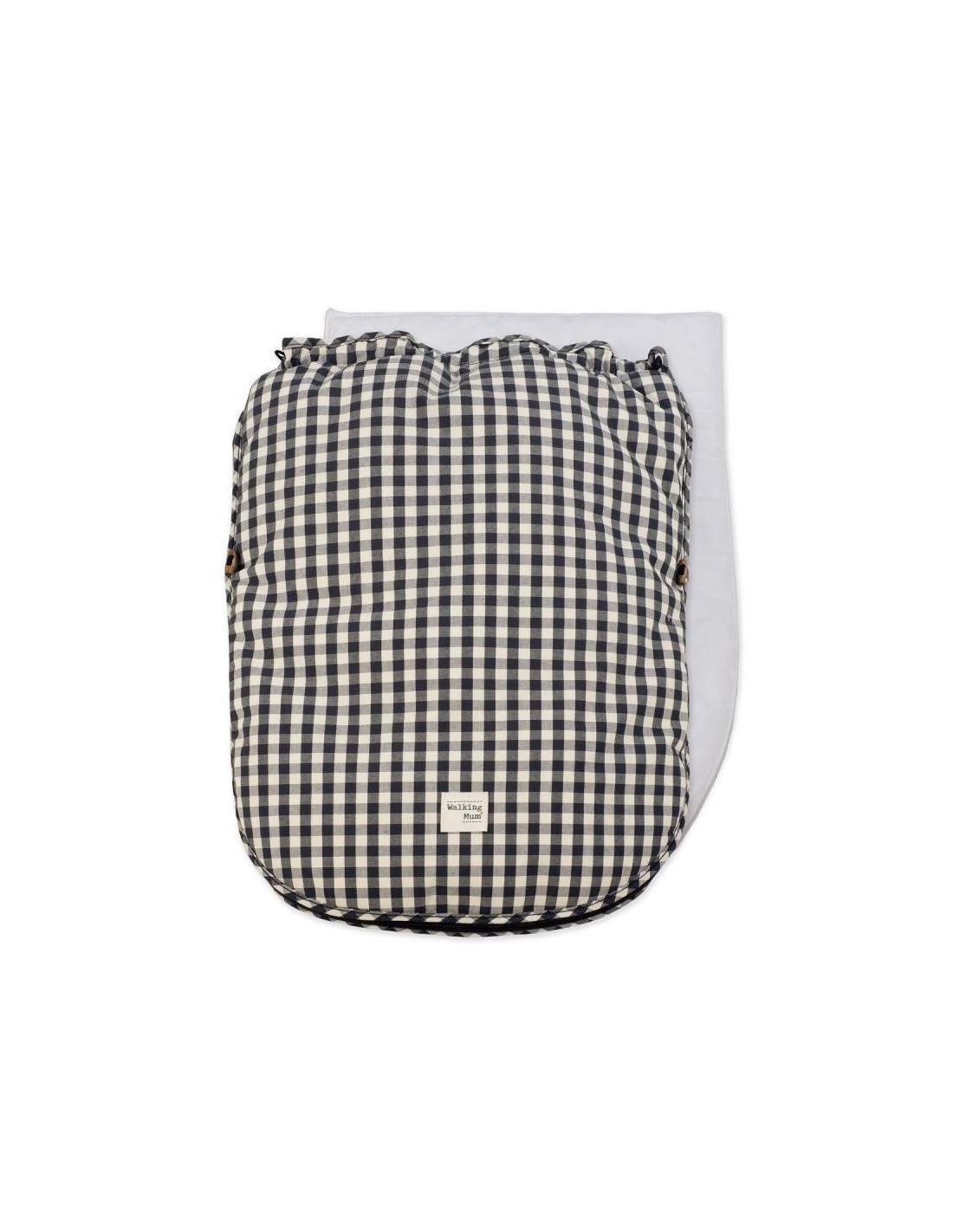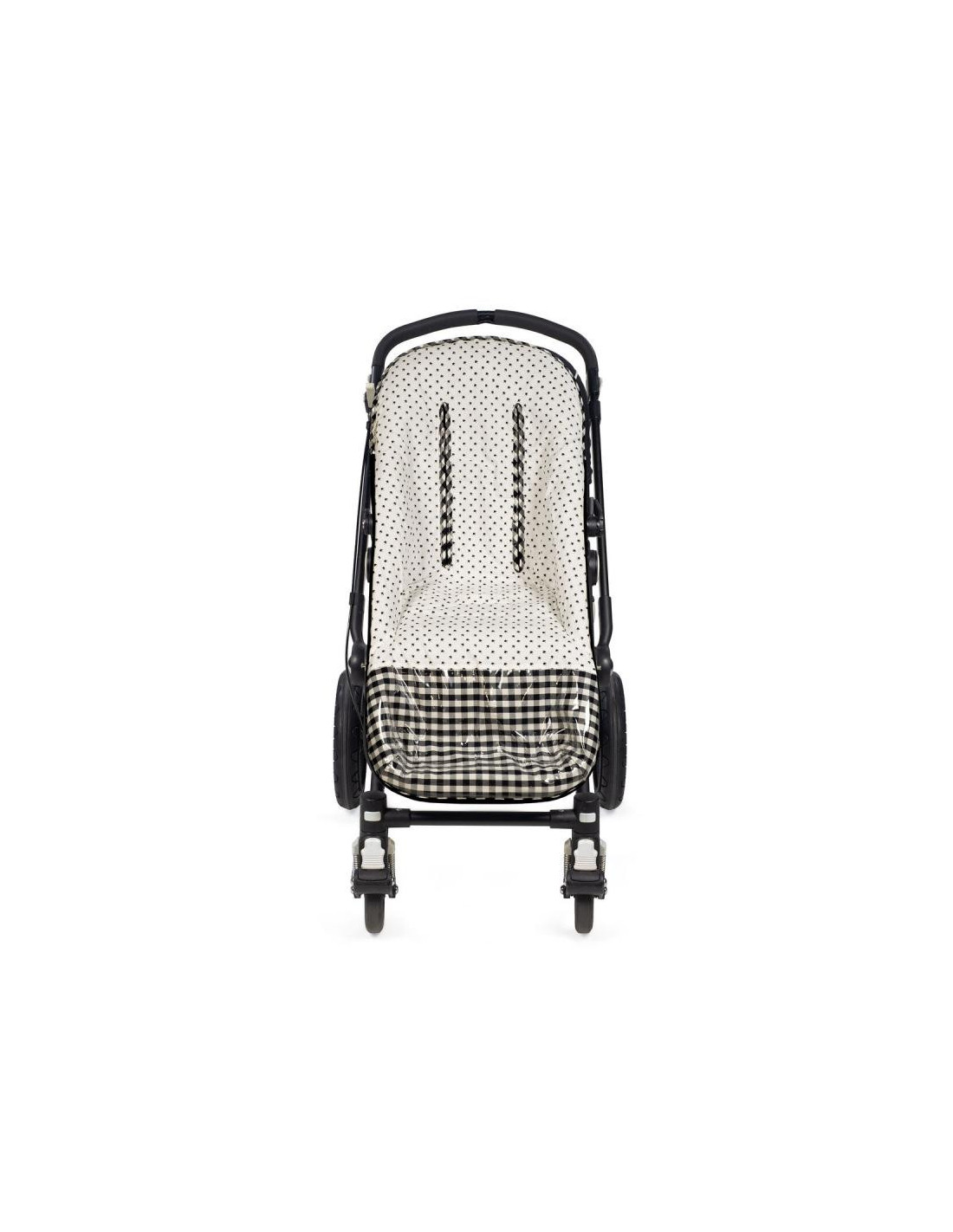 La funda de silla para bebé Remy en cuadro vichy XL negro, es la funda ideal para cubrir la base de la silla de paseo y viene provista de saco para arropar a tu bebé. Con este saco tu bebé estará cómodo durante el paseo. Trasera con material anti-sudoración que evita la sudoración excesiva del bebe. Relleno extraíble. Su esquema dispone de varias aperturas (ojales) y ajustes con los que se te hará más fácil adaptarla a la mayoría de los cochecitos, convirtiendo el paseo de tu bebé seguro y confortable. Está elaborado con un material resistene y cálido. Cuenta con una base plastificada en el reposapiés que facilita la limpieza posterior a su uso. Es un diseño bonito, simple y cómodo que crea un nido para tu bebé manteniéndolo arropado y protegido. El saco se adapta sin problemas a cualquier coche y le permite disfrutar de un descanso más agradable con la forma acogedora que tiene de nido.Gran calidad y mucho estilo. Fabricado en materiales resistentes y de fácil limpieza a mano o a máquina a 30 °C. Walking Mum protege a tu bebé utilizando los mejores tejidos, libres de colorantes azoicos y sustancias nocivas para la salud. Nuestra colección Walking Mum está diseñada con un particular sello de estilo urbano y moderno que no pasa desapercibido, para vestir diferente los paseos con tu bebé. Los accesorios de esta línea son más sport y prácticas, especialmente pensadas en mamás y papás modernos que aprecian los diseños más actuales y en tendencia sin dejar de lado la calidad y la funcionalidad de complemetos que hacen más cómodos todos los paseos con sus bebés. Especificaciones: Materiales: exterior 65% algodón ? 35% poliéster / interior 100% algodón. Color: Negro. Medidas: Universal.
