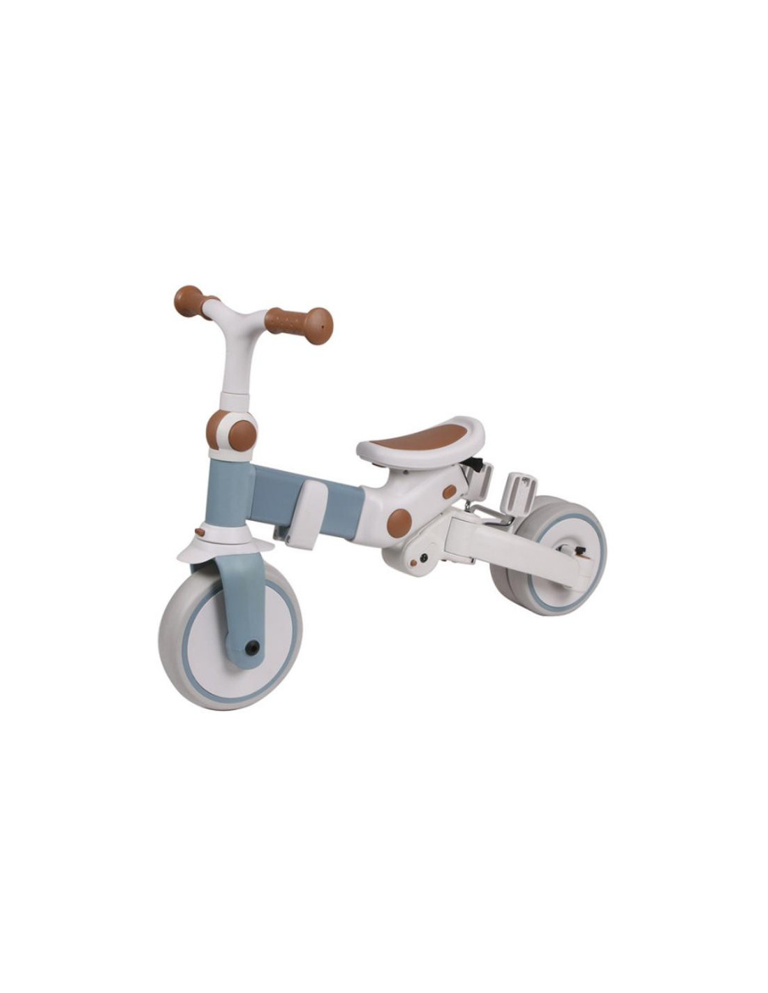 - Provisto de un sencillo sistema que permite transformar la bicicleta sin herramientas y ajustarla a la edad del niño.