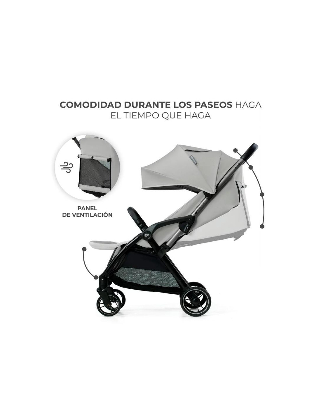Capota grande con panel de ventilación y ventanilla para tener el niño a la vista