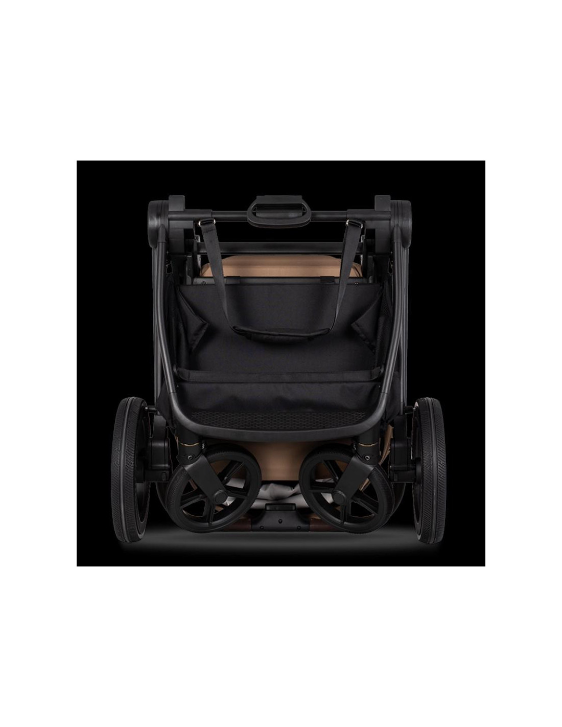 Para completar su diseño con el mejor estilo, el cochecito ha sido enriquecido con detalles cuidadosamente trabajados en un tono de oro marrón. El manillar y el asa de la capota en un cálido tono negro crean una composición armoniosa, resaltando el carácter único de de nuestro Claro Forest.