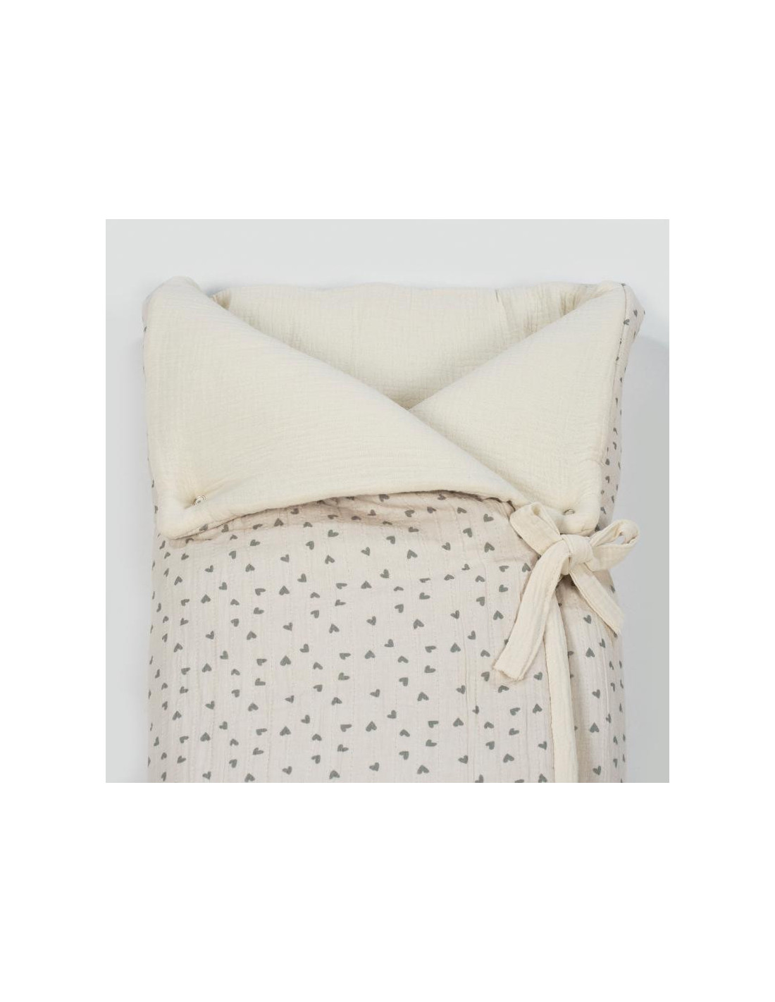Es perfecto para los primeros paseos en el capazo. Se convierte en una manta para la cuna.