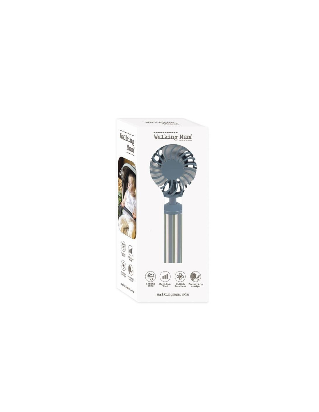 El Ventilador portatil de Walking Mum es el complemento ideal para mantener a tu bebé fresco y confortable durante los paseos en días calurosos. Su diseño compacto y ligero se fija fácilmente a la sillita gracias a su pinza de sujeción segura, permitiendo colocar el ventilador en la posición perfecta. Cuenta con 3 velocidades ajustables para adaptarse a cada situación, y su tubo flexible permite dirigir el aire con precisión. Funciona con batería recargable mediante cable USB incorporado, ofreciendo una autonomía aproximada de 2 a 5 horas según la intensidad elegida. Fabricado en materiales resistentes ABS + PP, está diseñado para un uso seguro y duradero, cumpliendo con normativa RoHS y SVHC sobre restricción de sustancias peligrosas. Un accesorio práctico y funcional que convierte cada paseo en una brisa suave y agradable. Perfecto para cochecitos, cunas de viaje, asientos de coche o cualquier lugar donde tu peque necesite un respiro. Medida: 16 cm