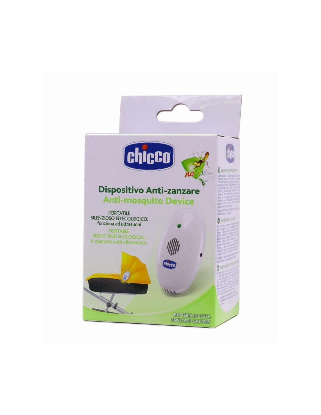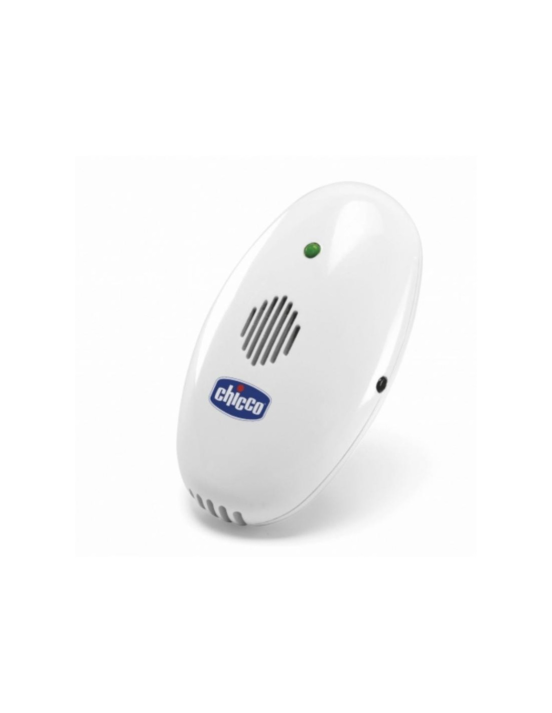 Dispositivo antimosquitos portátil de Chicco que funciona por ultrasonidos que molestan a los mosquitos, pero no a las personas.Está indicado para estar al aire libre. Es silencioso y ecológico. Con una pinza muy práctica, para llevarlo contigo