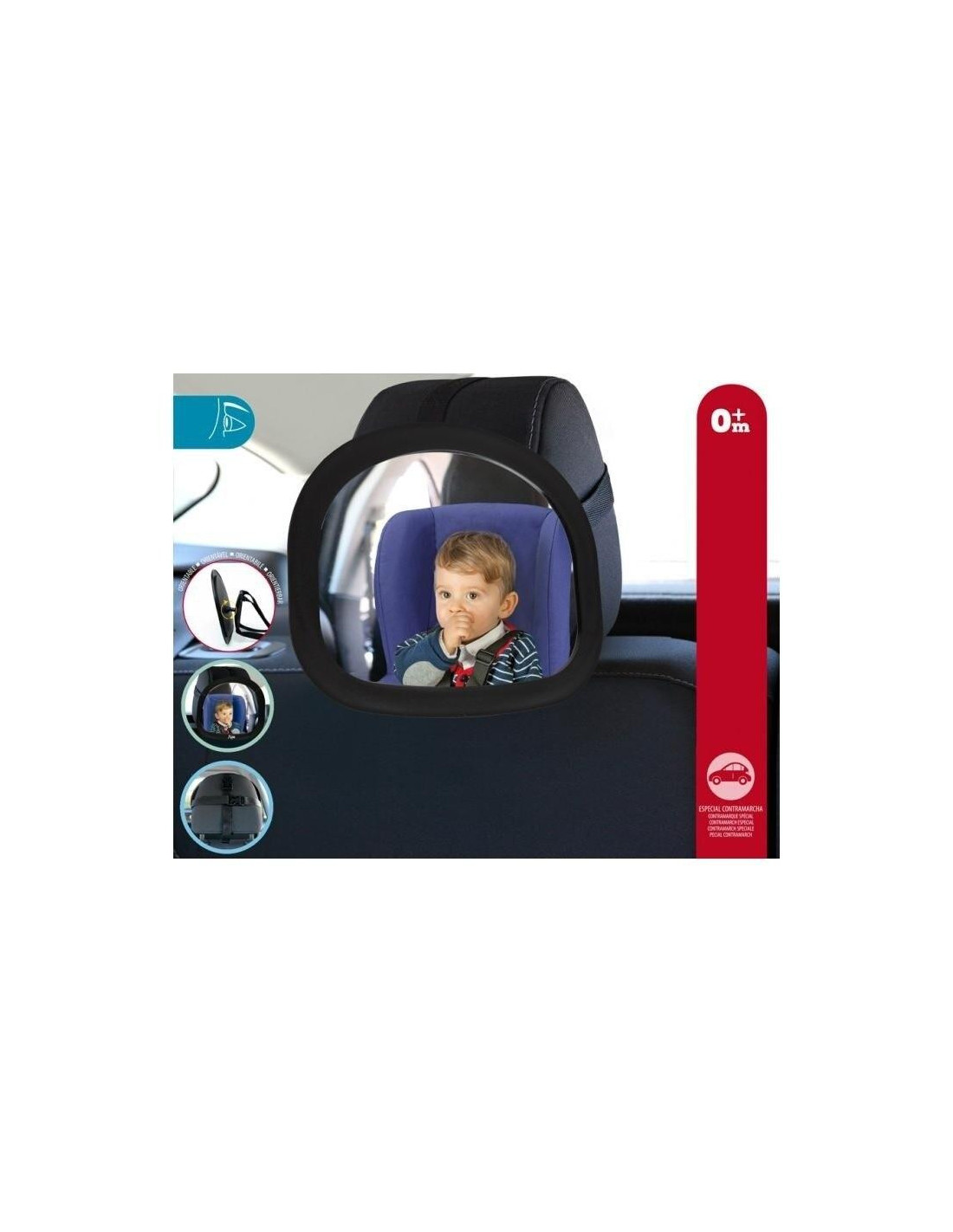 Espejo retrovisor para colocarlo en el reposacabezas trasero para poder visualizar al bebé cuando esta colocado a contra marcha.