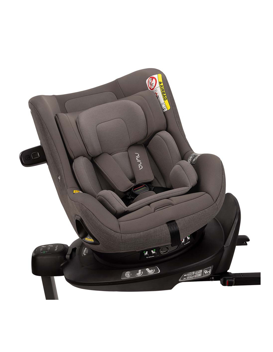 Cuenta con bloqueo de rotación para mayor seguridad al instalar al bebé en la silla. Se activa para bloquear la silla en posición a contramarcha hasta que el niño tenga como mínimo 15 meses.
