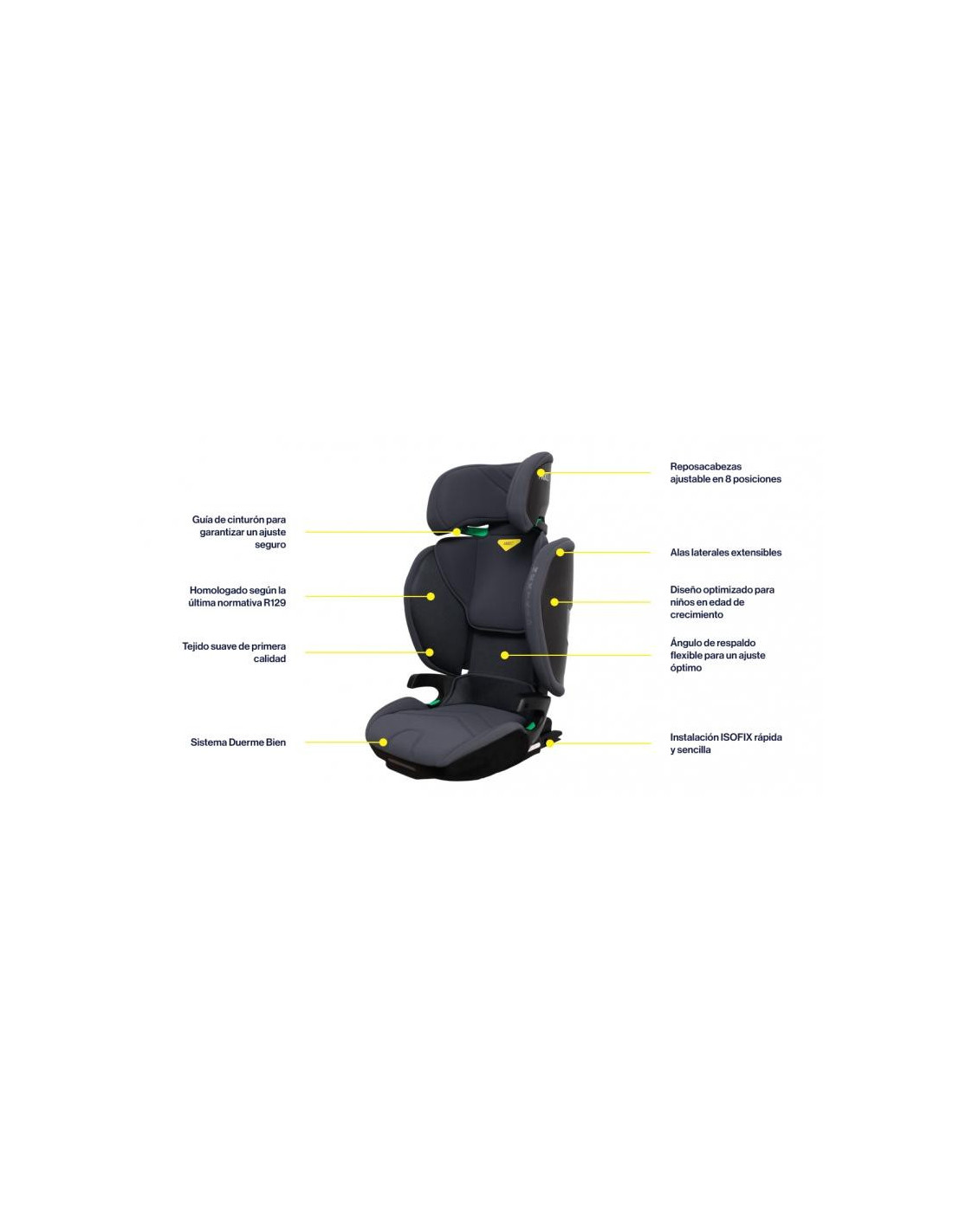 Con su homologación según la normativa R129, puedes estar seguro de que tu hijo viaja en uno de los asientos elevadores más seguros del mercado.