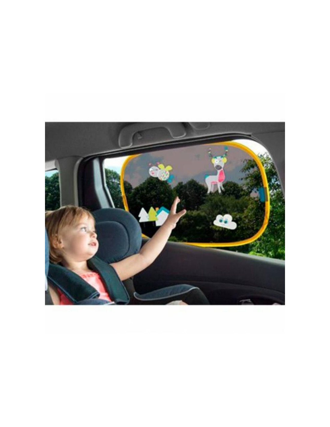 Parasol Electrostático Personalizable para Coche Badabulle ideal para proteger de los rayos UV durante los viajes. Su fijación es muy sencilla, simplemente presiona con la mano. Además, contiene 8 pegatinas reutilizables para que tu pequeño se divierta y desarrolle su imaginación pegándolas sobre el parasol o sobre el cristal.