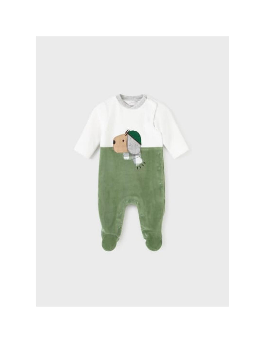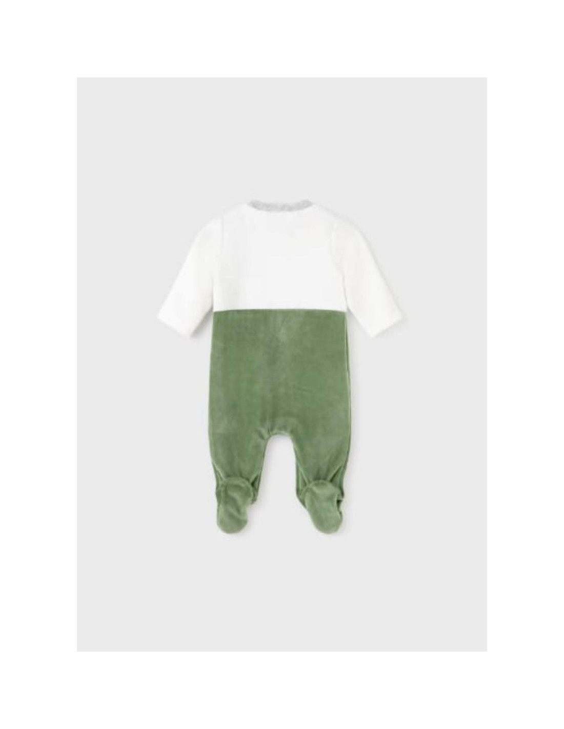Pijama manga larga para recién nacido niño 0 a 18 Meses. Diseño con pies. Cuello redondo. Cierre lateral con botones a presión. Cierre con botones a presión en la entrepierna. Combinación bicolor. Este artículo se presenta en una caja de la línea Newborn ideal para regalar en ocasiones especiales.