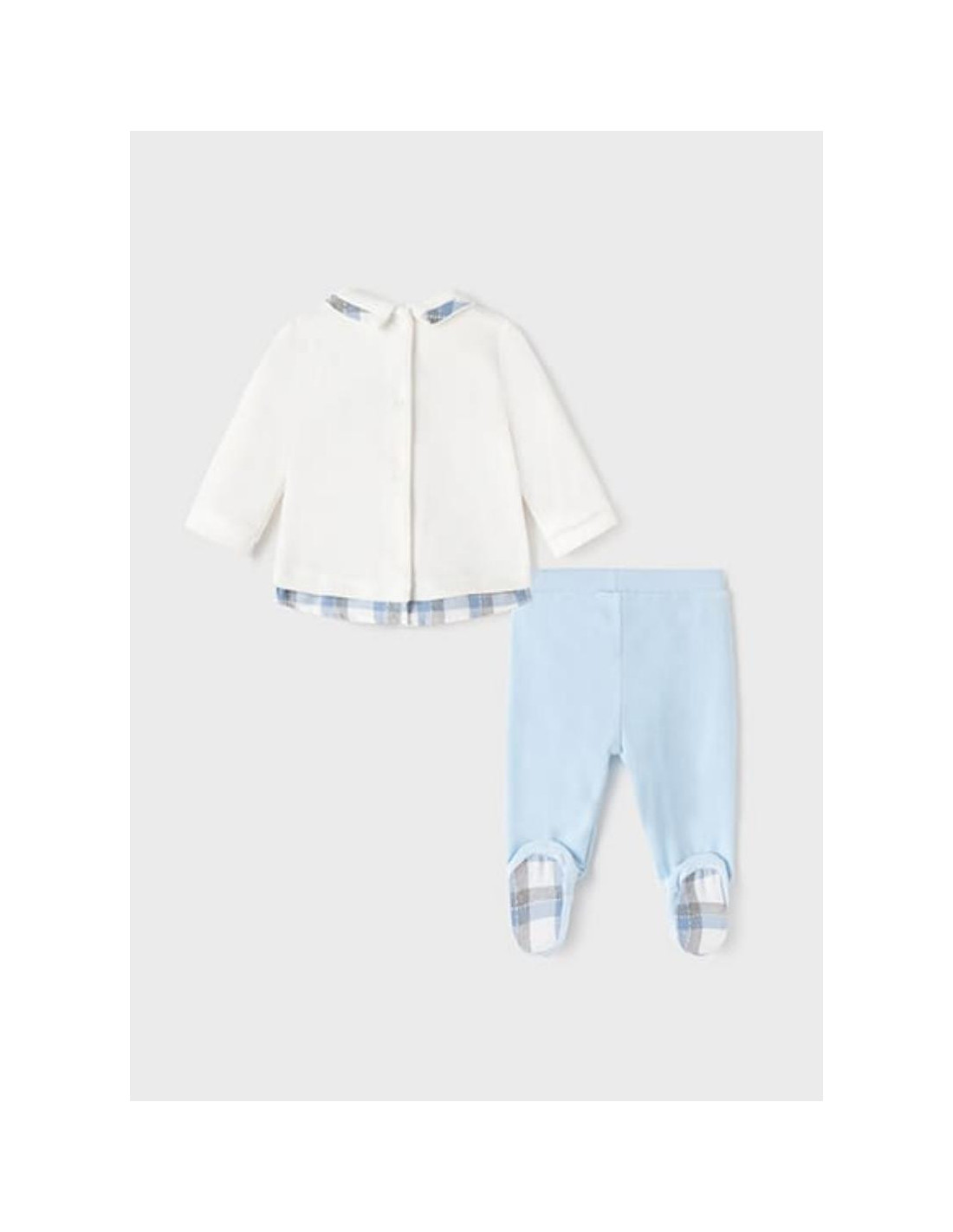 Camiseta de manga larga para recién nacido niño 0 a 18 Meses. Cuello camisero. Cierre con botones a presión en la parte posterior para facilitar la puesta de la prenda.