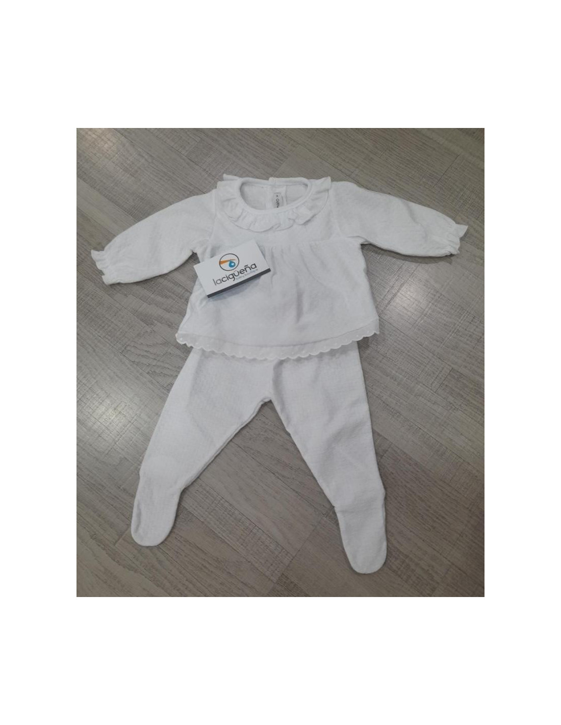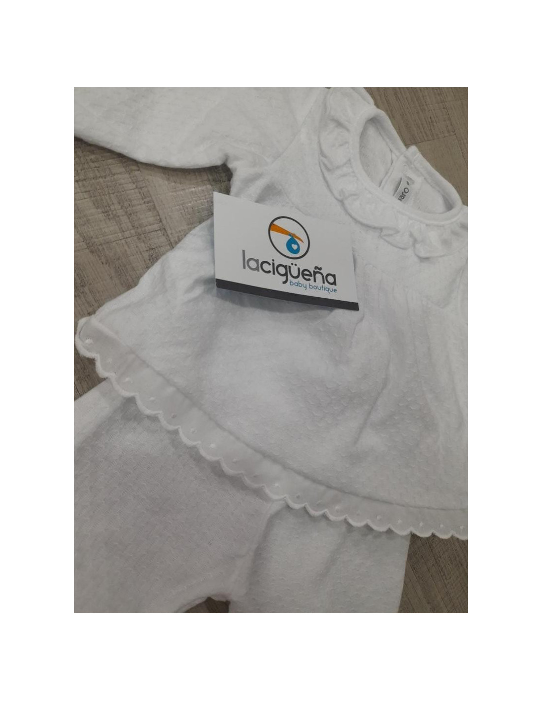 Conjunto en algodón 100% camiseta manga larga abierta con corchetes por la espalda y polaina con elastico en la cintura,