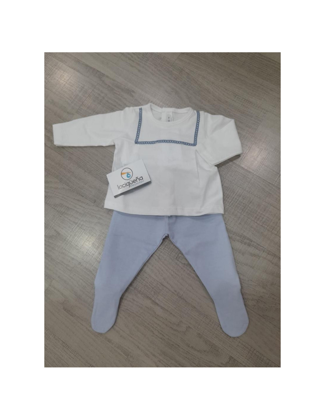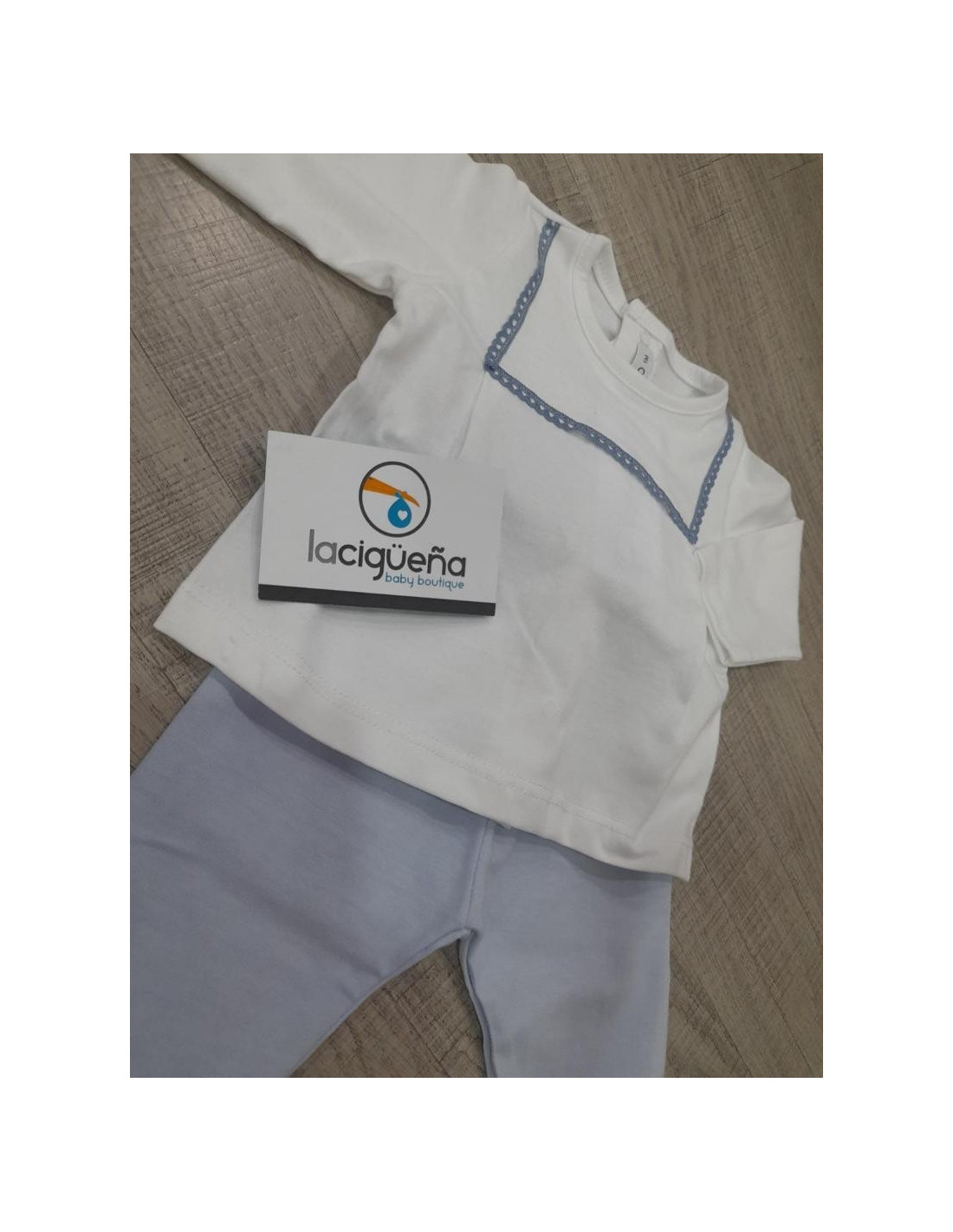 Conjunto en algodón 100% camiseta manga larga abierta con corchetes por la espalda y polaina con elastico en la cintura,