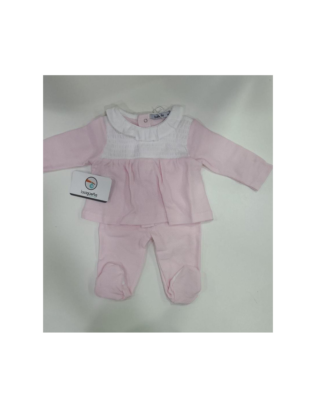 CONJ.2P ALGODON M/L ROSA CUELLO VOLANTE BLA PIQU