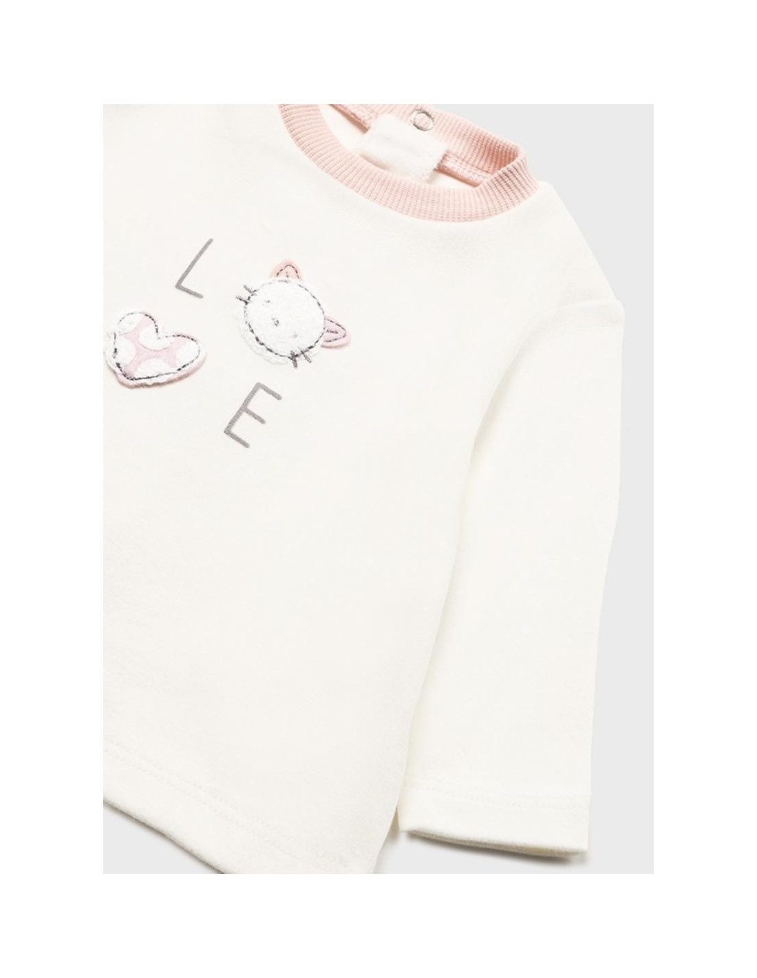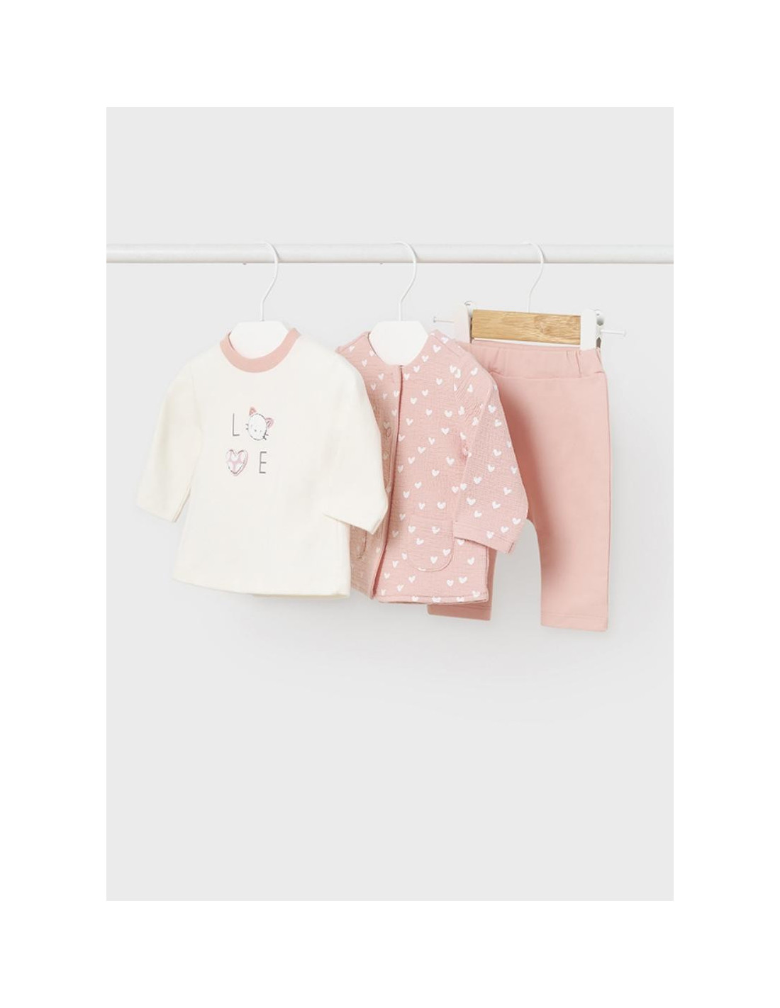Prenda ECOFRIENDS, contiene algodón sostenible. Chándal de tres piezas para recién nacido compuesto por una sudadera, un pantalón largo deportivo y una camiseta a juego.
