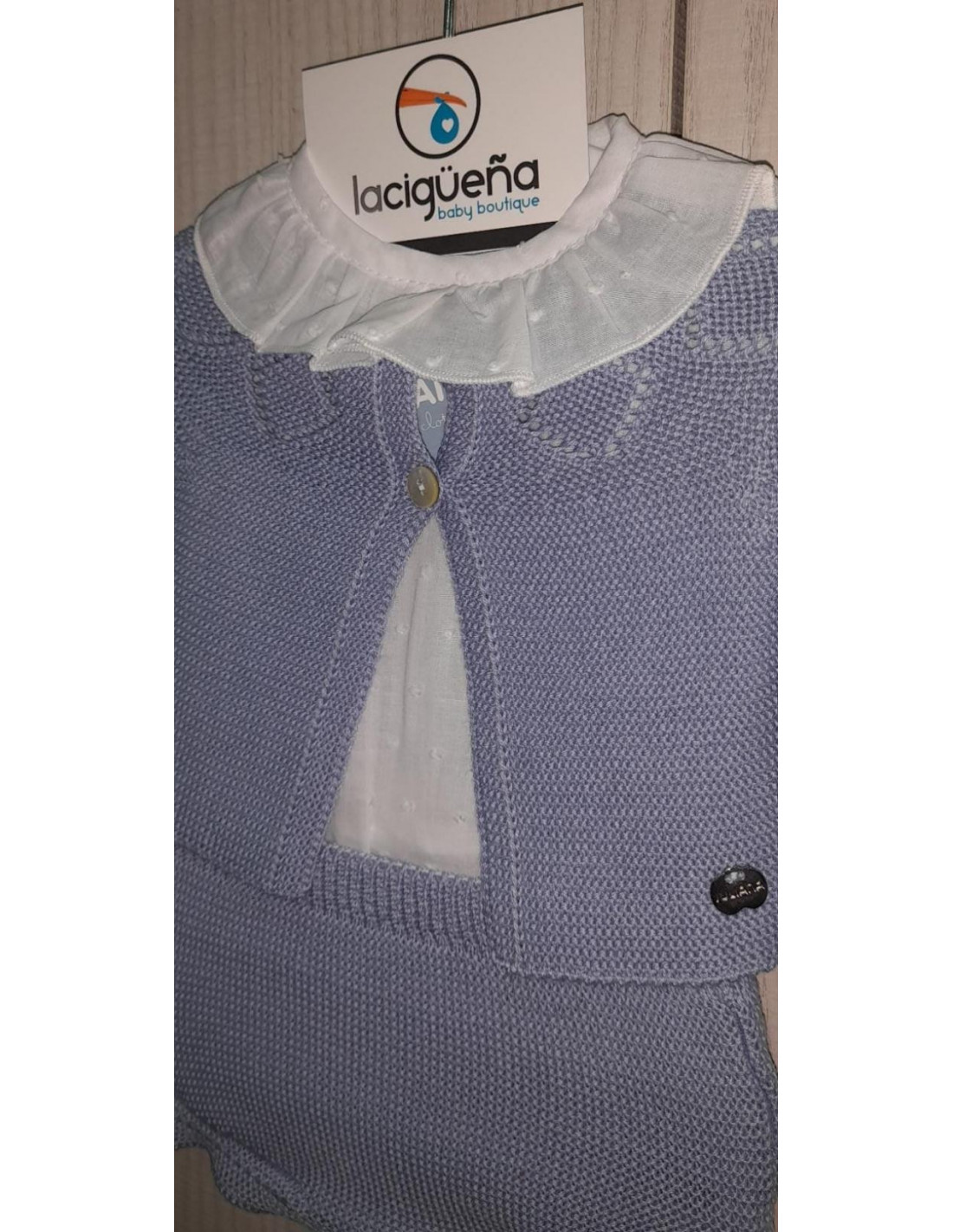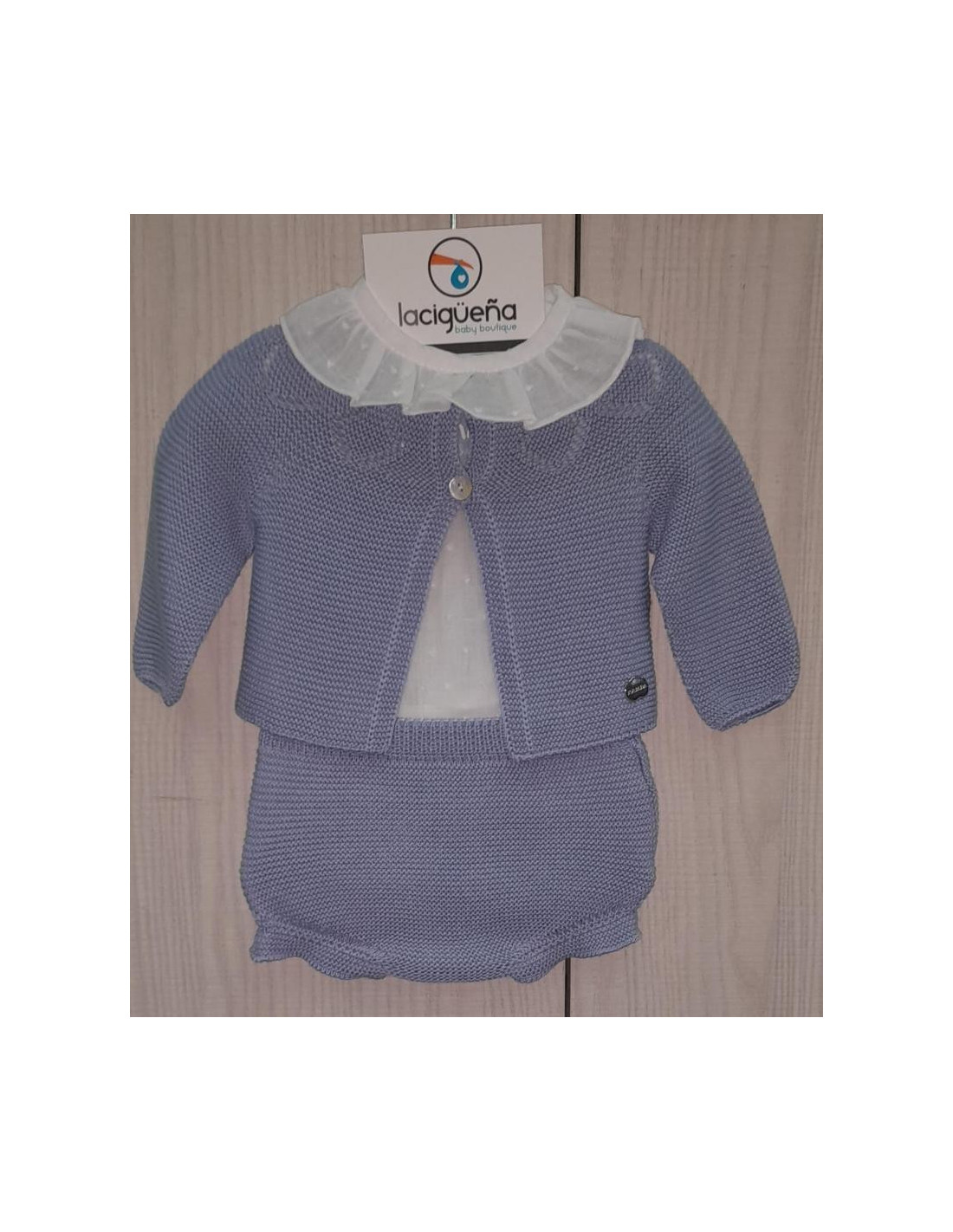 Rebeca hilo manga larga, abotonada en el cuello, con braguita en hilo a juego.