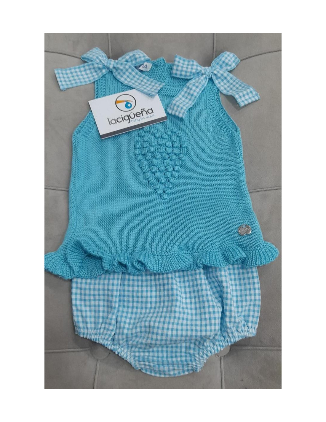 Jersey hilo sin manga, con lazitos de vichi en los hombros.