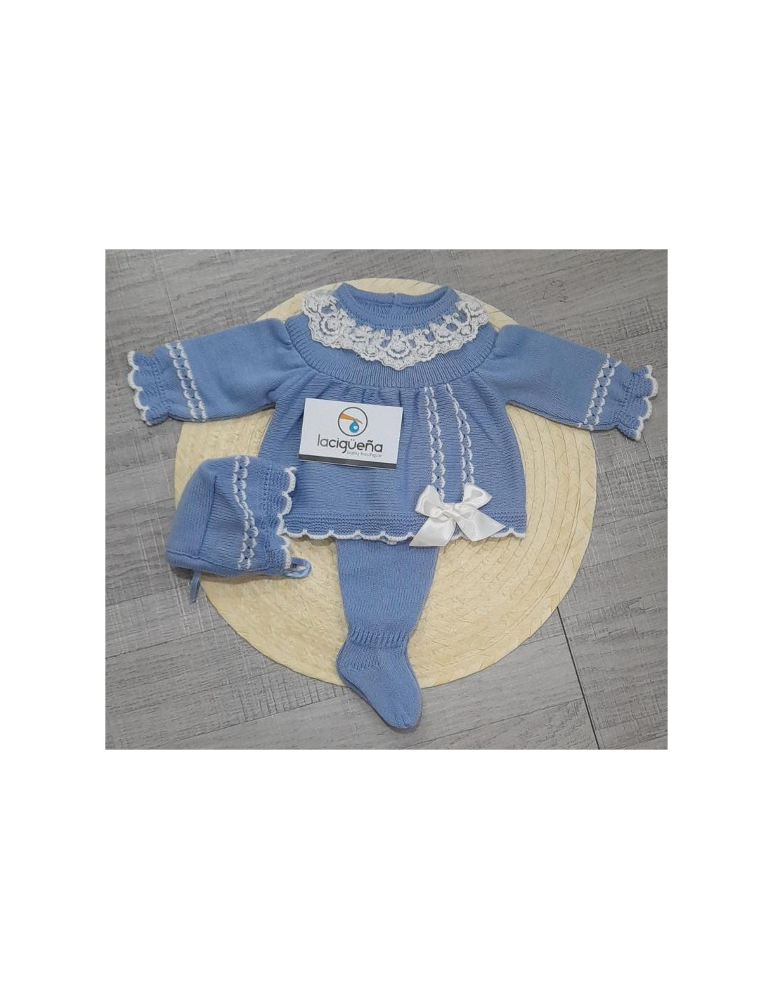 CONJ.3P LANA AZULON PUNTILLA LAZO BEIG