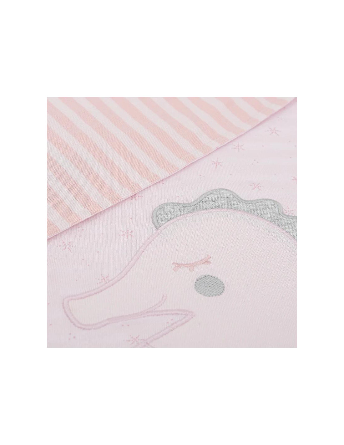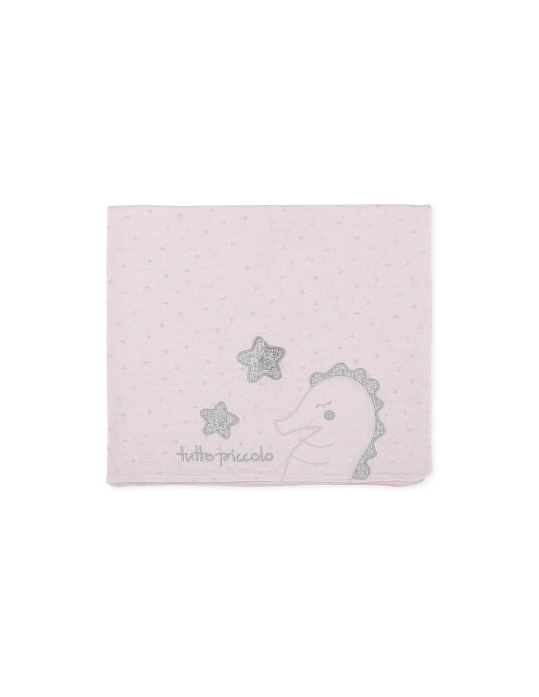 Manta de punto liso estampado estrellas de mar combinado con punto liso rayas. Detalle caballito de mar bordado.