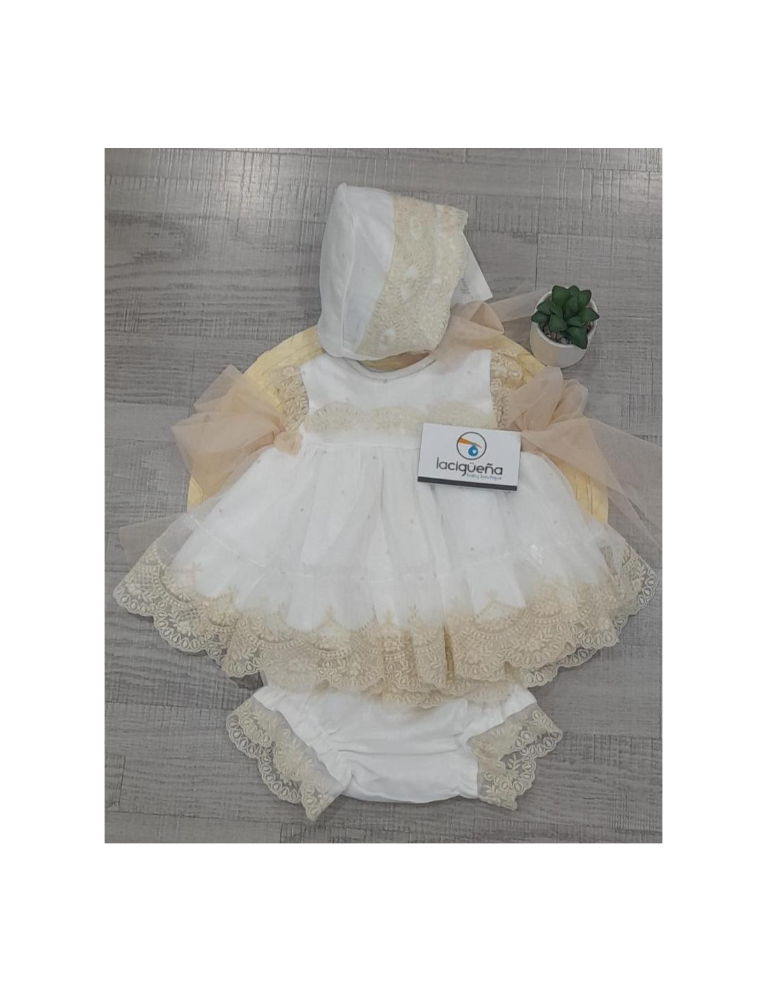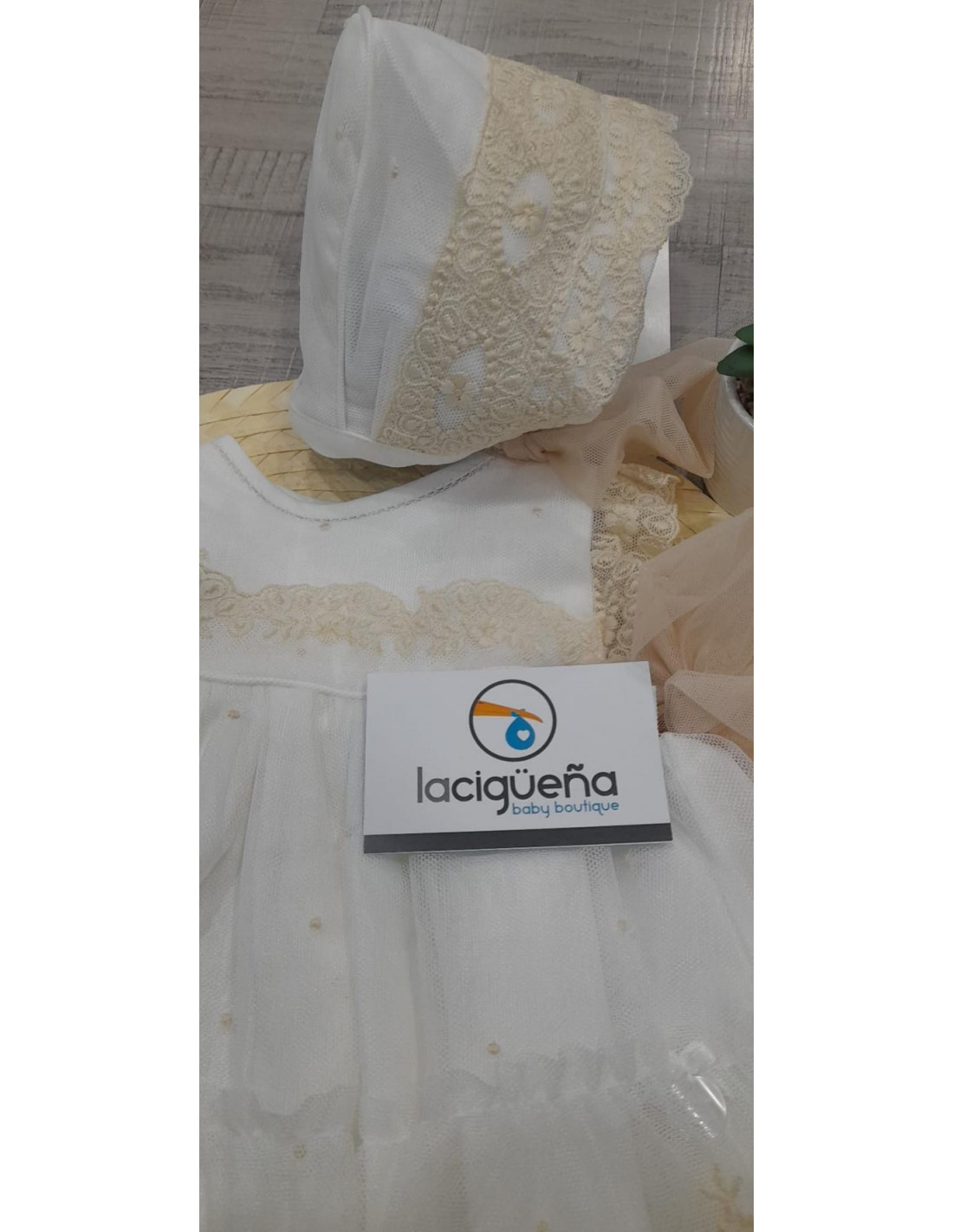 VESTIDO S/M+BRAGA+GORRO JAZMIN BEIG