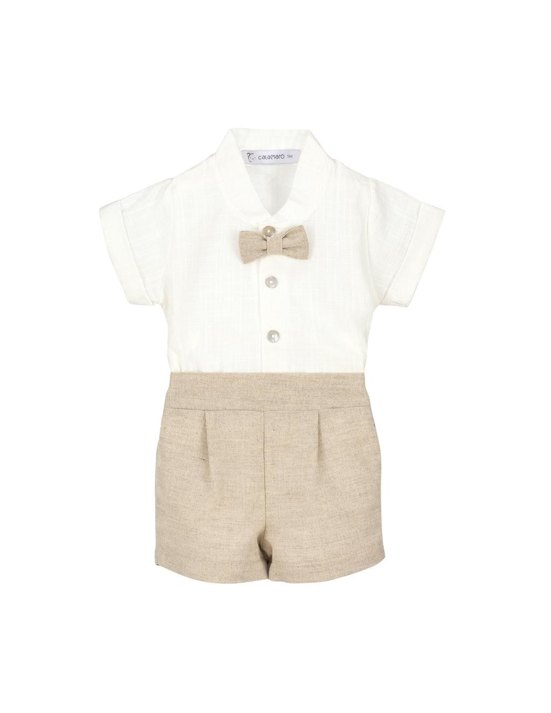 Camisa y pantalon de lino con detalle de pajarita a juego,