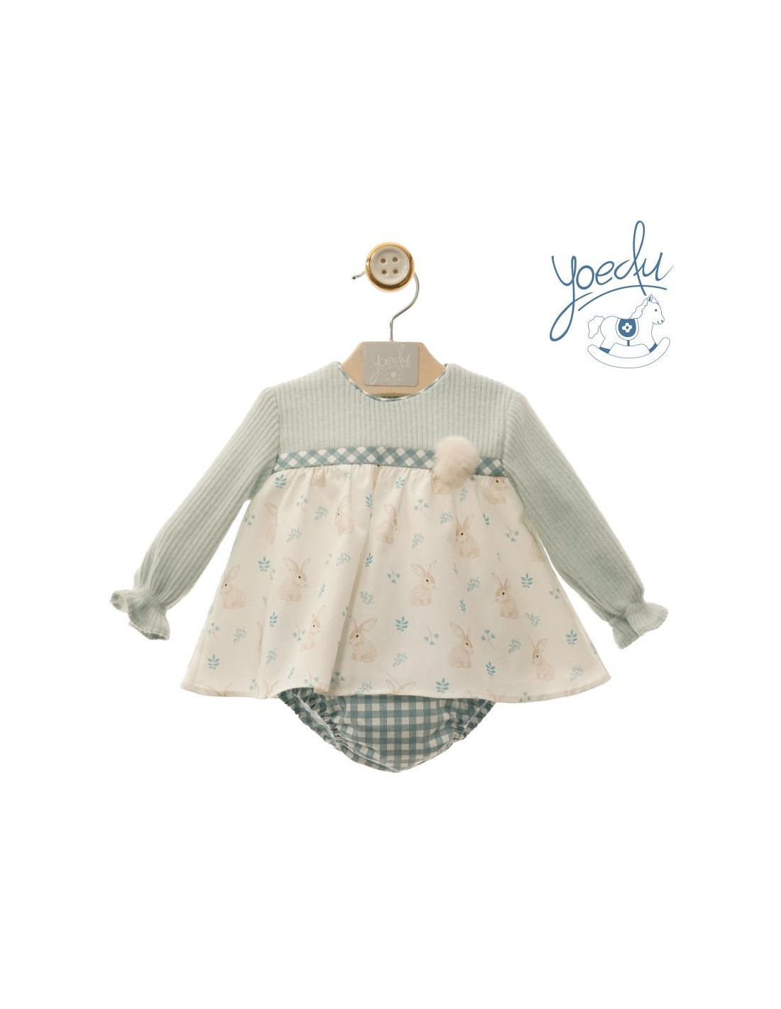 VESTIDO M/L CONEJITOS+BRAGA VICHI VERDE