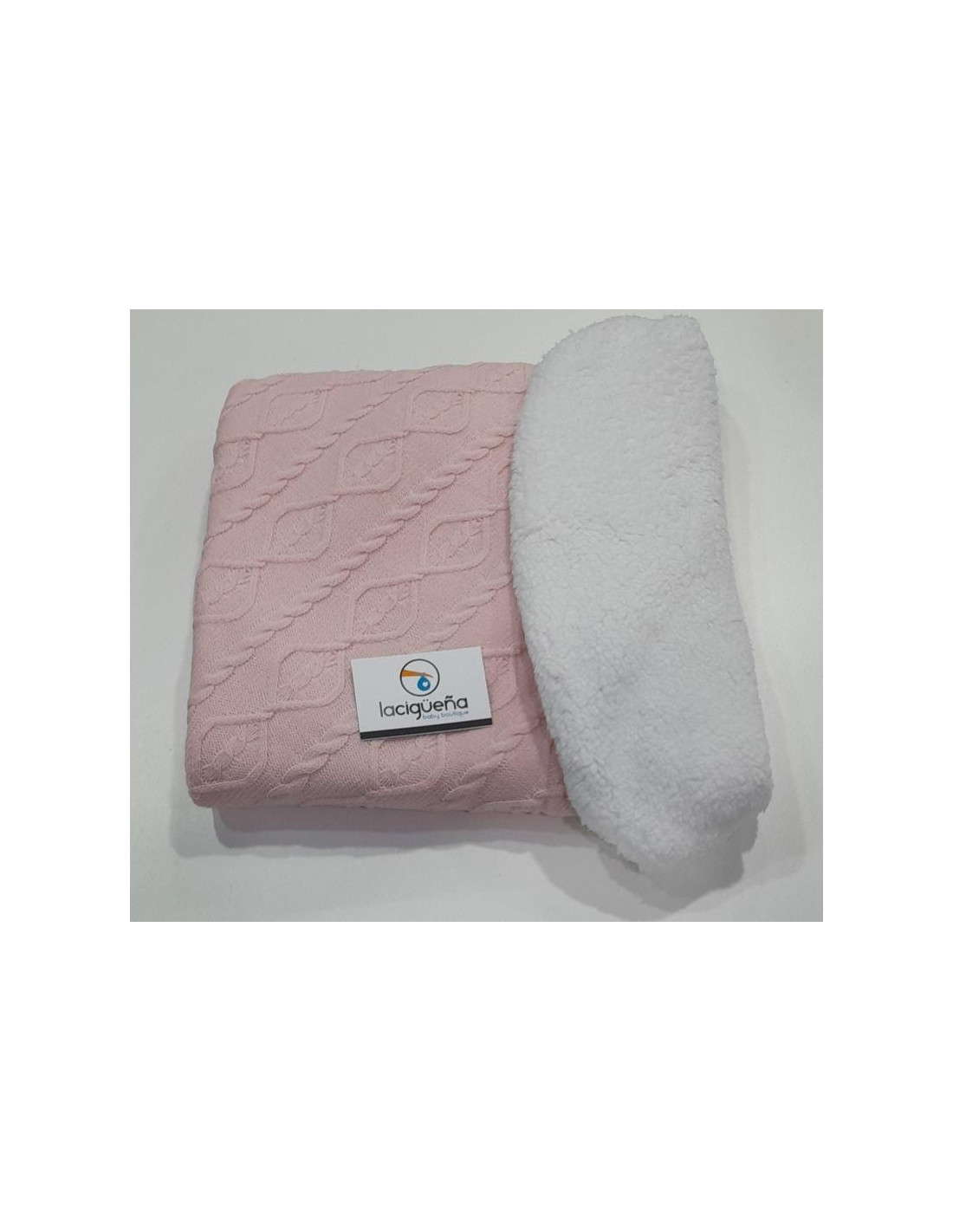 MANTA LANA HOJAS ROSA DULCE BORREGUILLO