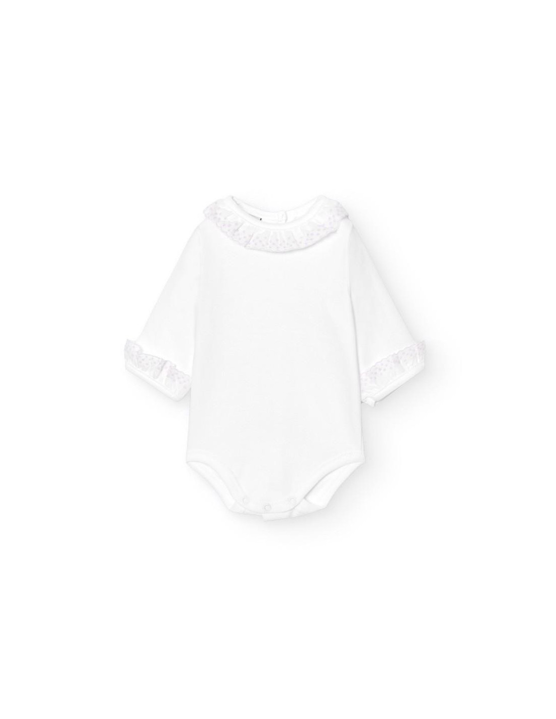 Los bodys con cuello volante aportan un toque distintivo. Con broches o corchetes en la parte trasera permitiendo abrir completamente por la espalda en body.