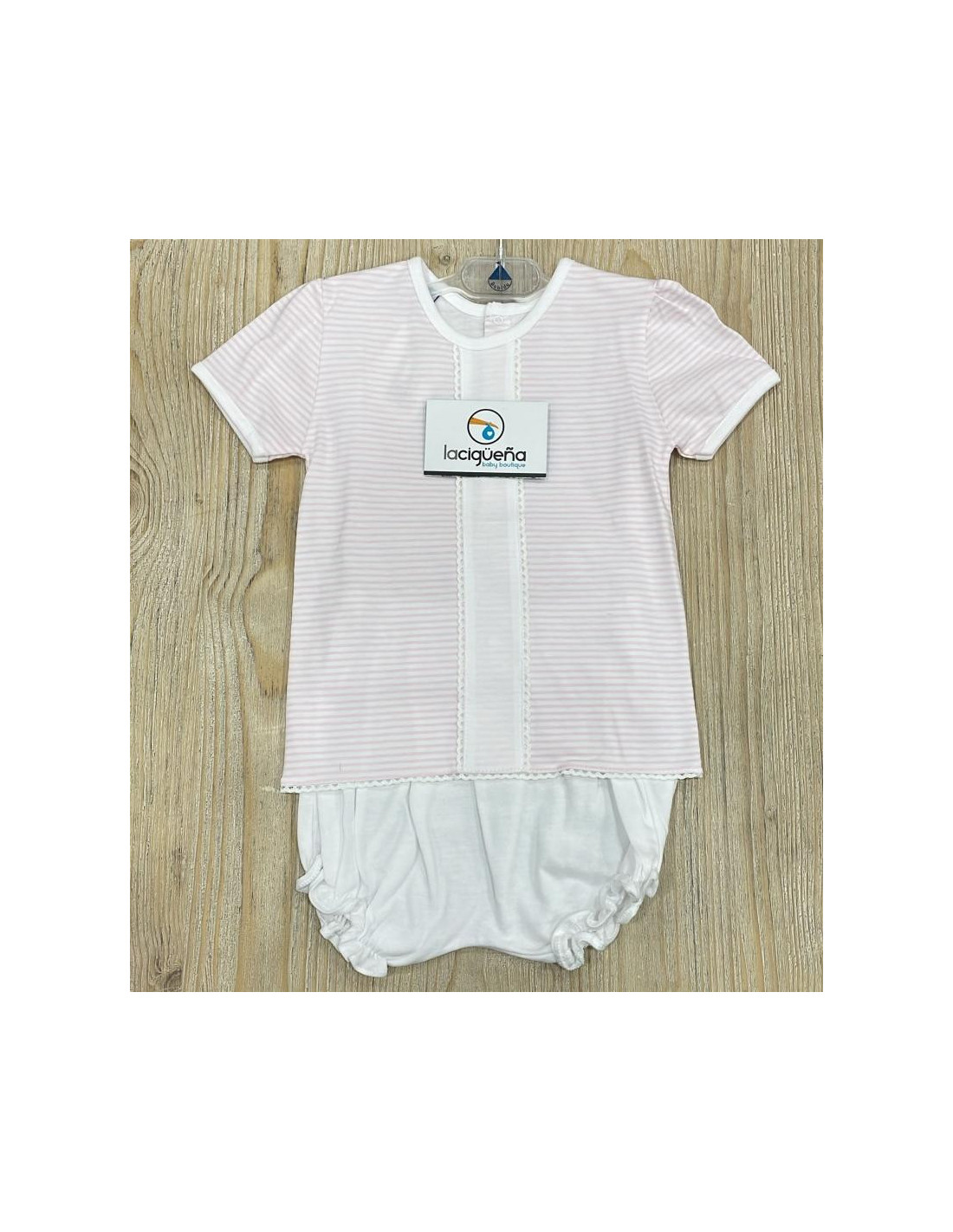 CAMISETA MANGA CORTA+RANITA RAYITAS BLANCO ROSA BABIDU