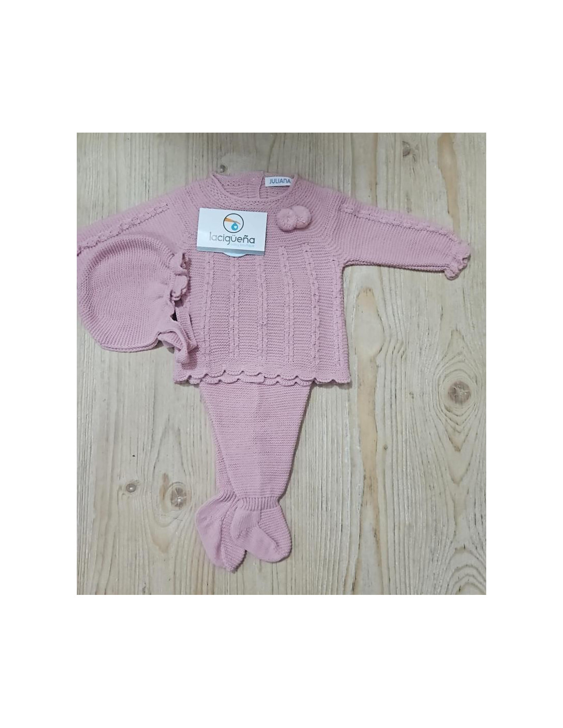 CONJUNTO LANA CON GORRO Y POLAINA POMPOM ROSA EMP JULIANA